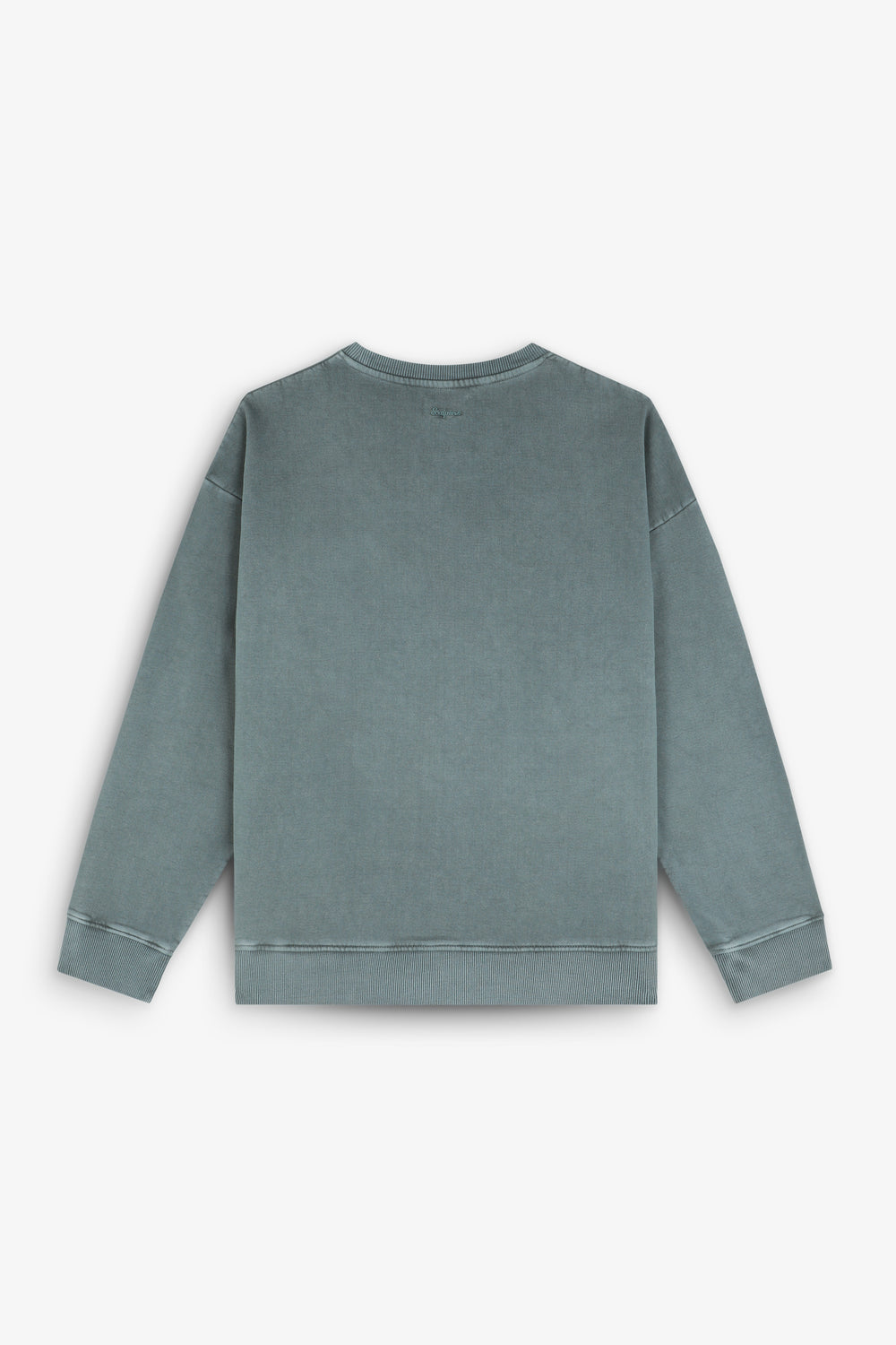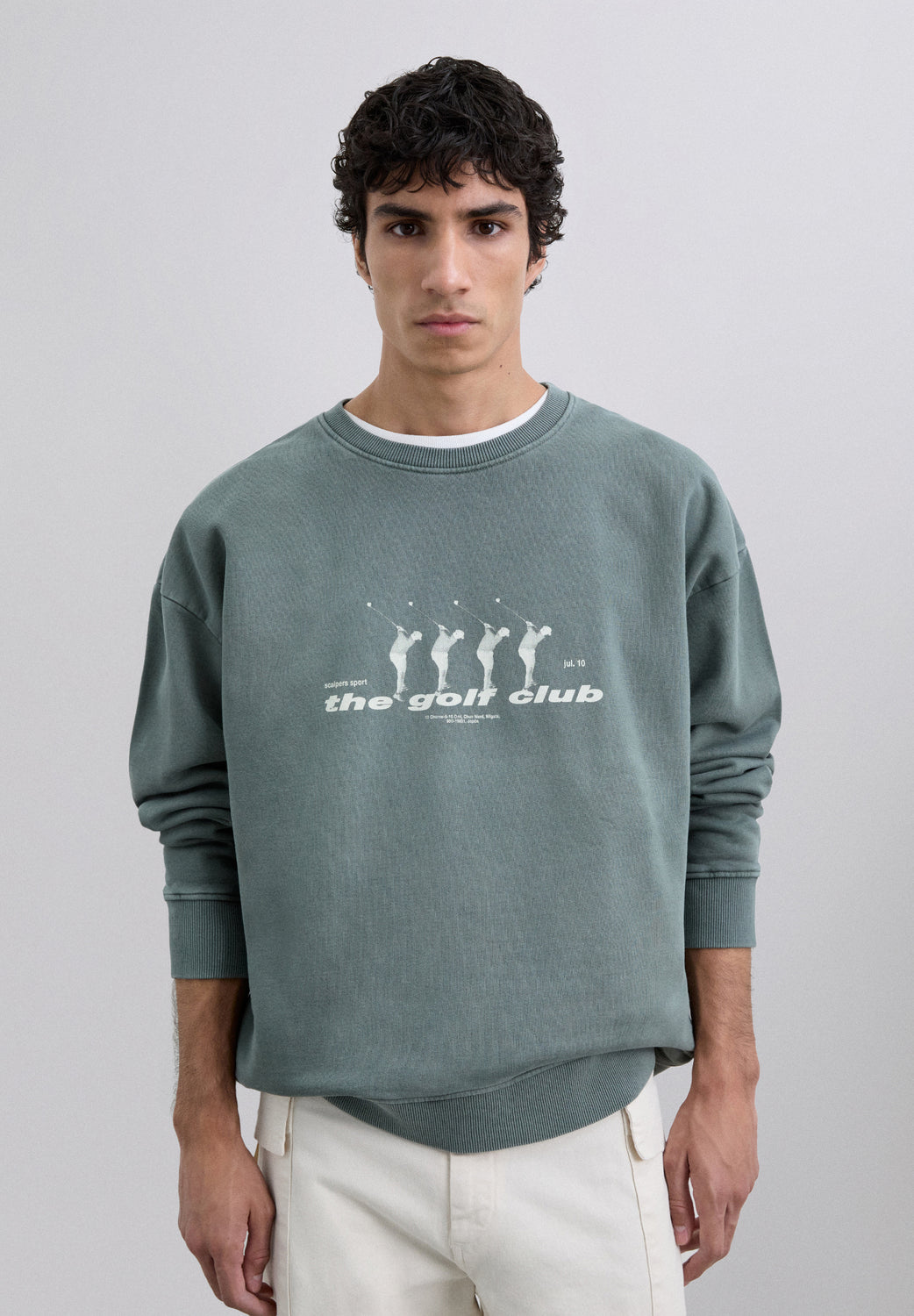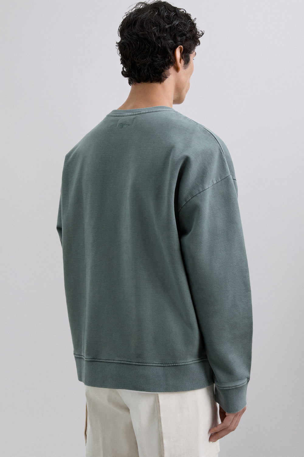 Sudadera confeccionada en 100% algodón BCI. Print frontal. Regular fit. Manga larga. Cuello redondo. Detalle logo bordado en espalda. Acabados en rib.