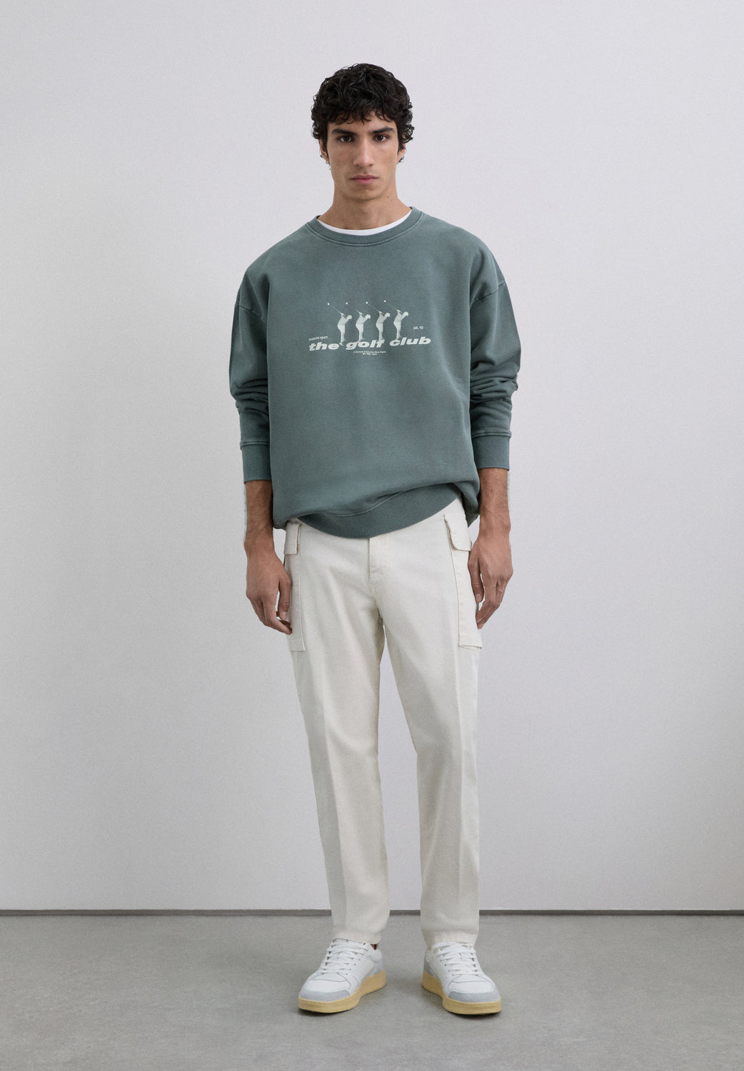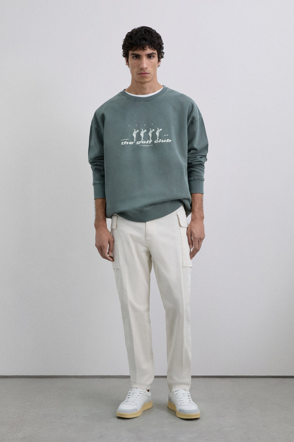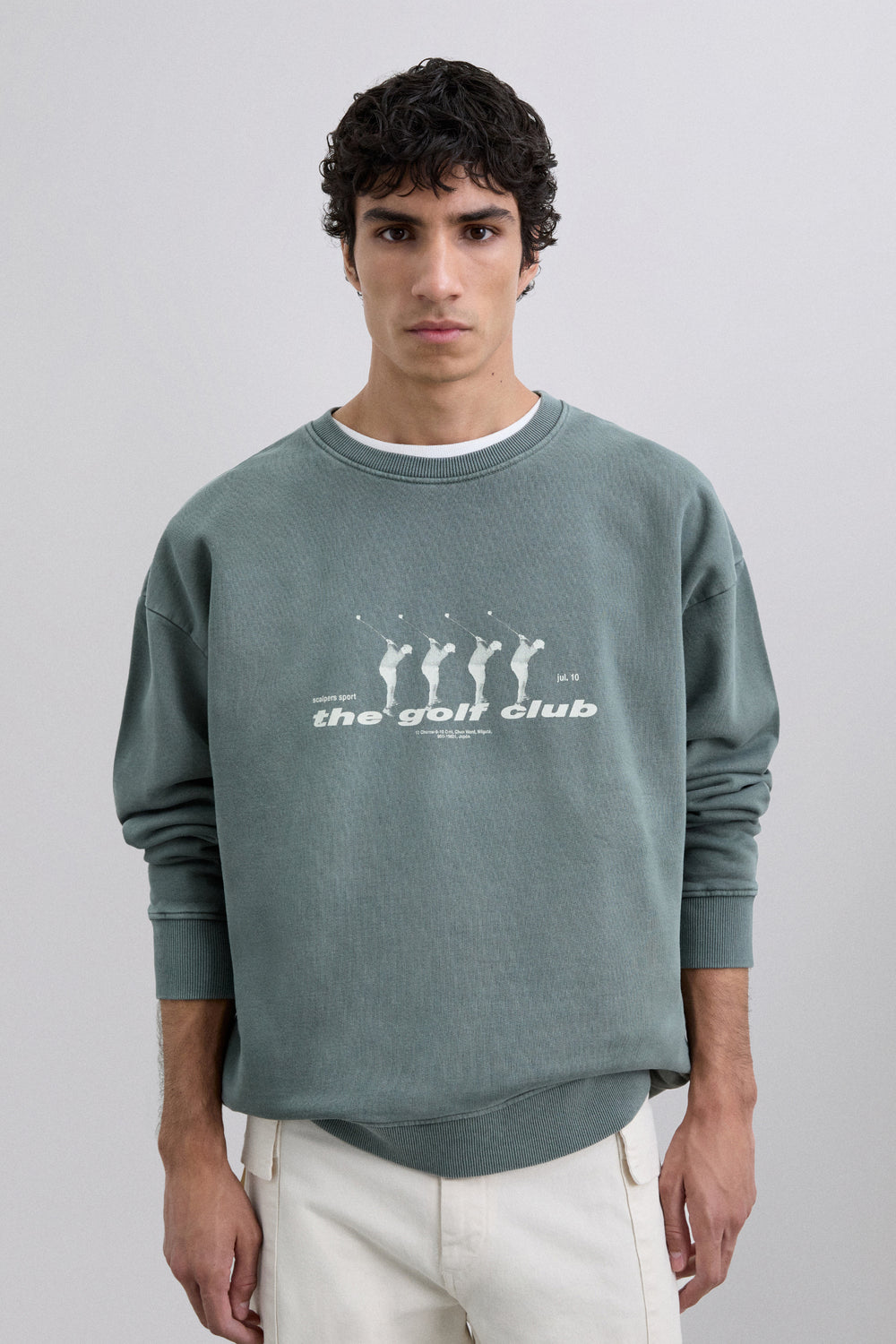 Sudadera confeccionada en 100% algodón BCI. Print frontal. Regular fit. Manga larga. Cuello redondo. Detalle logo bordado en espalda. Acabados en rib.