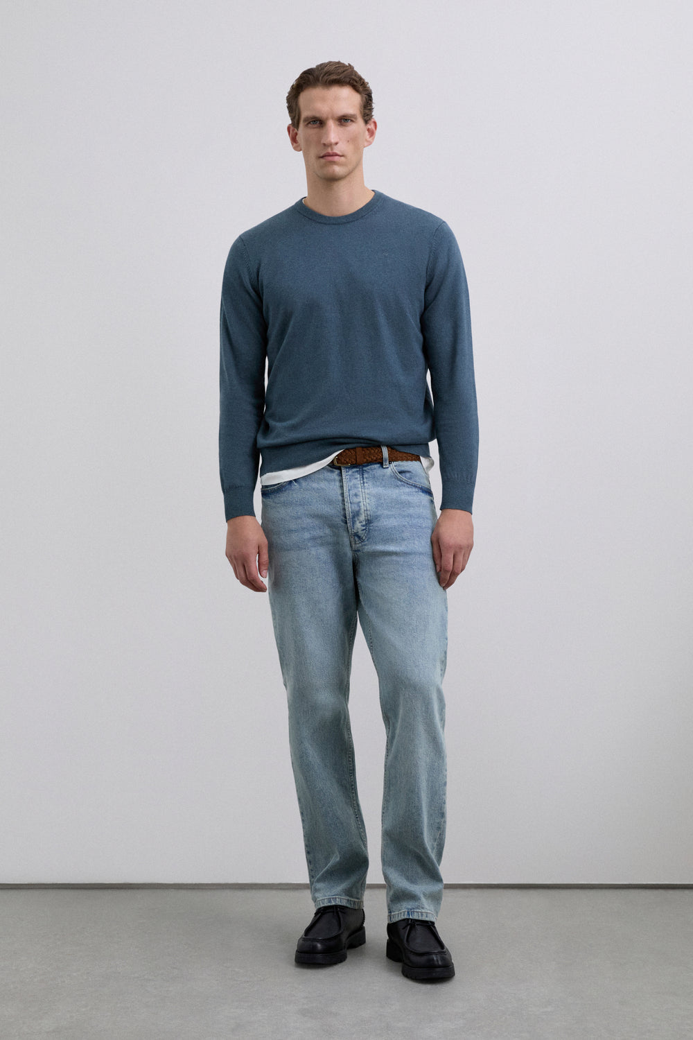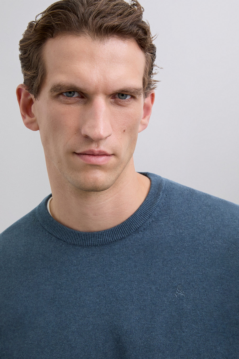 Jersey confeccionado en mezcla de algodón y cashmere. Cuello redondo. Manga larga. Acabados en rib. Detalle de logo bordado a tono en pecho.
