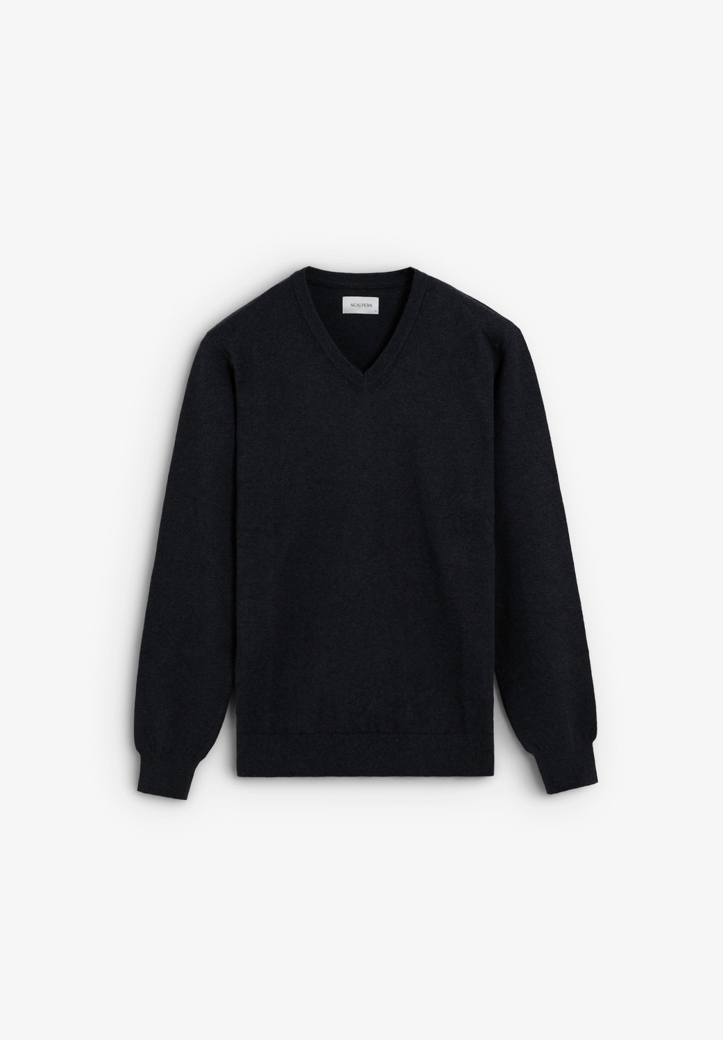 Jersey confeccionado en mezcla de algodón y cashmere. Manga larga. Cuello en pico. Acabados en rib. Detalle de logo bordado a tono en pecho.