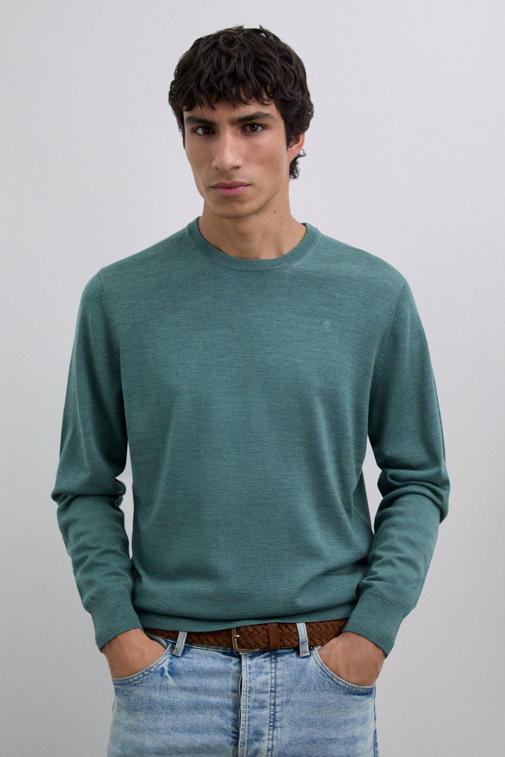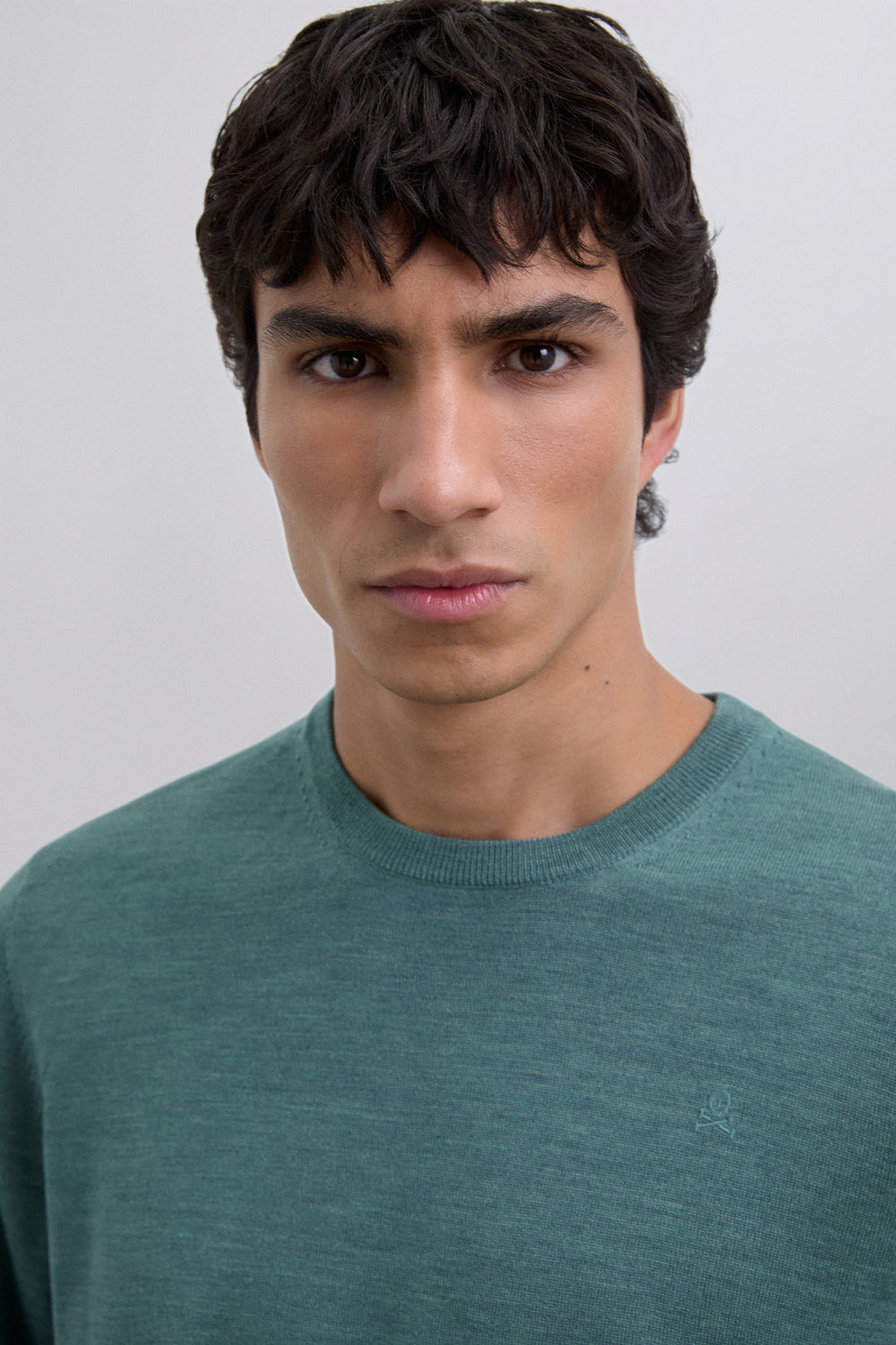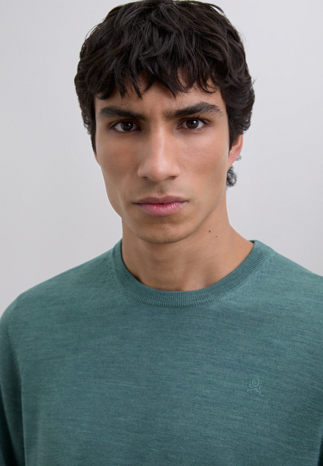Jersey confeccionado en 100% lana merino. Regular Fit. Cuello redondo. Manga larga. Detalle de calavera bordada a tono en el pecho. Acabados acanalados