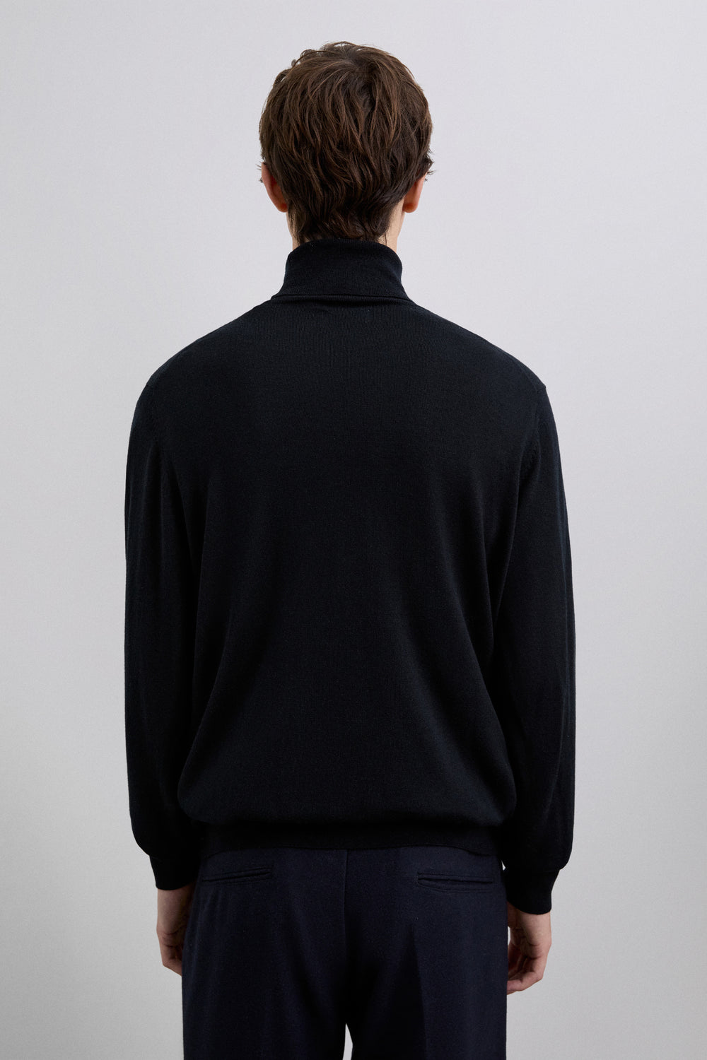 Jersey confeccionado en 100% lana merino. Manga larga. Cuello vuelto. Puños y bajos acanalados. Detalle de calavera bordada a tono en pecho.