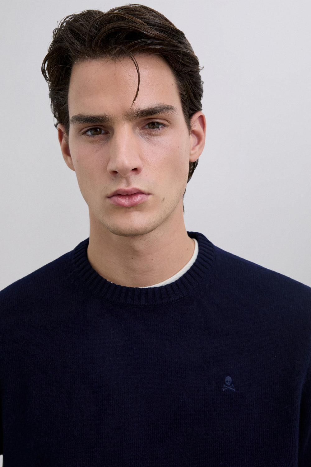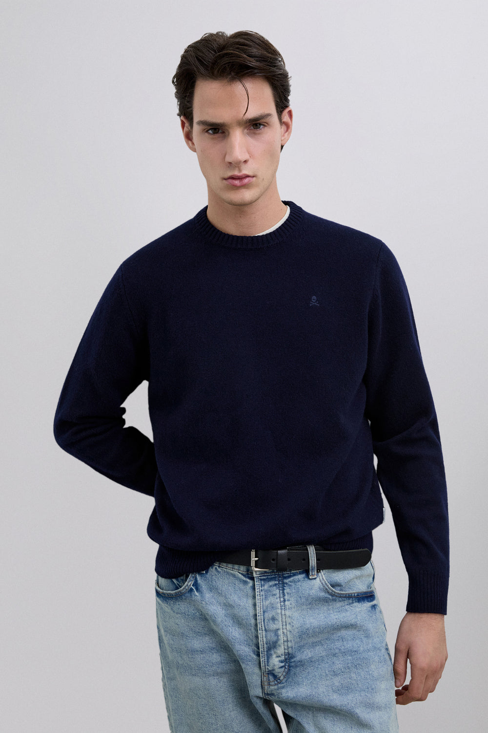 Jersey de punto confeccionado en tejido mezcla lana y cashmere. Cuello redondo. Manga larga. Acabados en rib. Detalle logotipo bordado a tono en pecho.