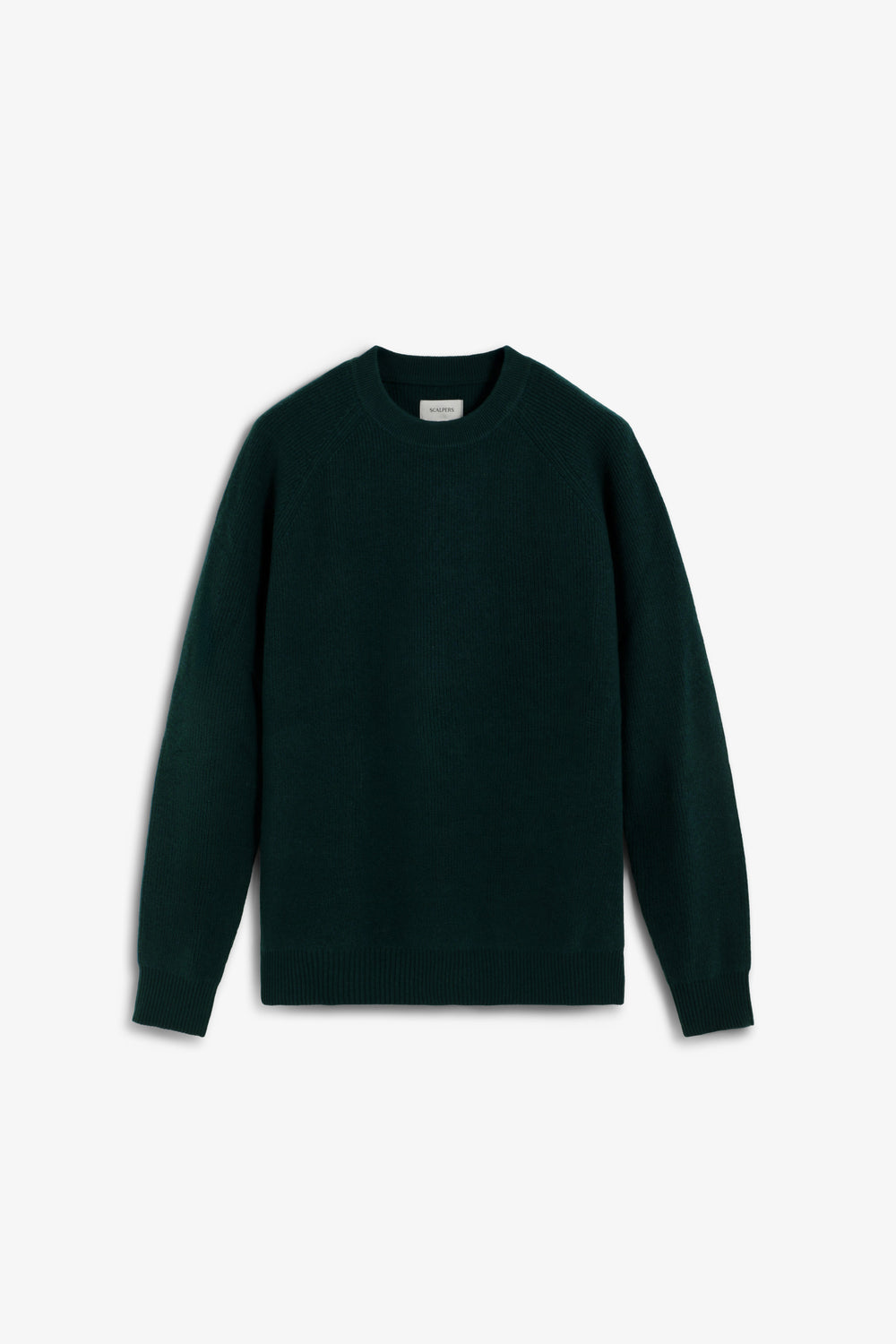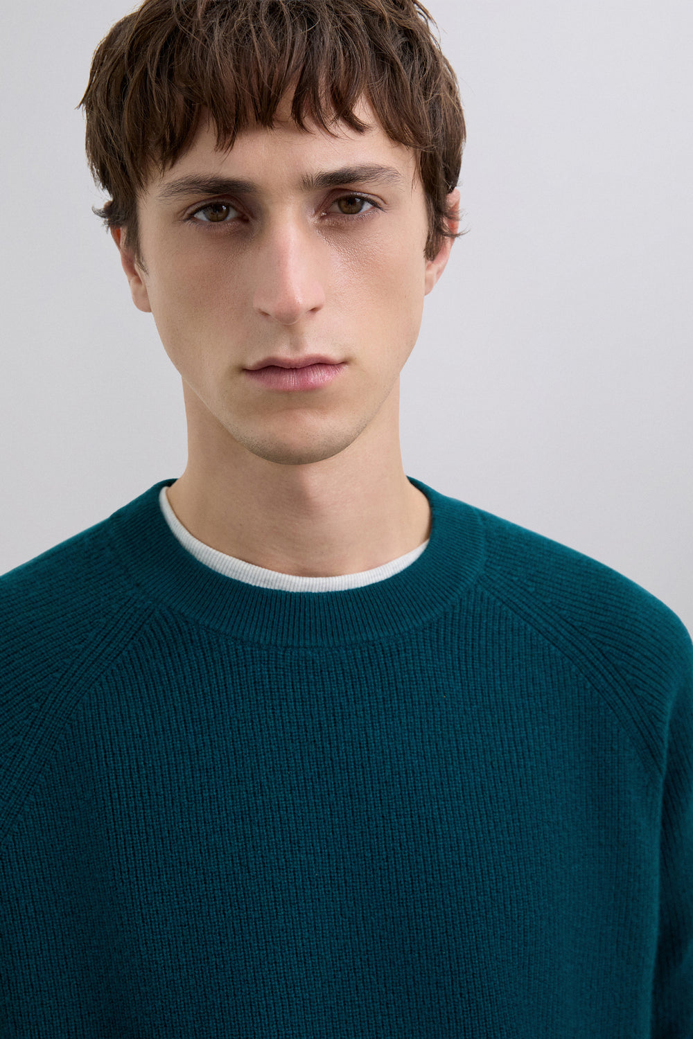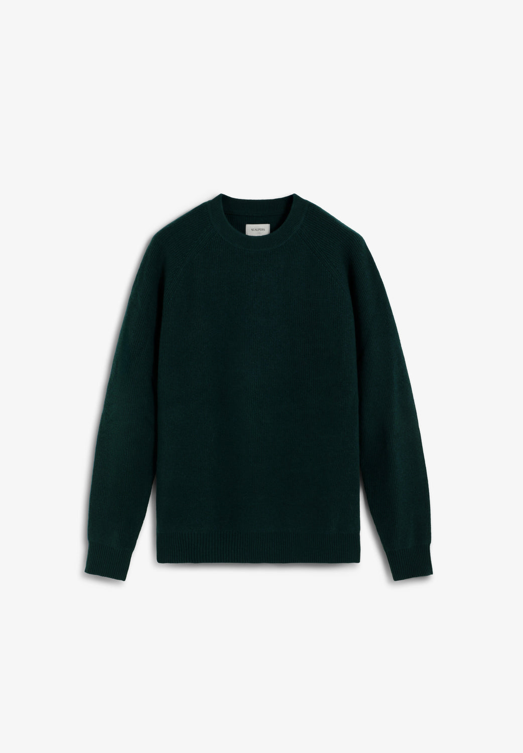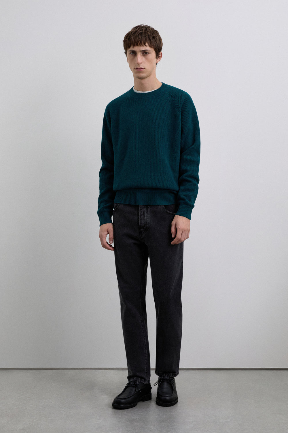 Jersey confeccionado en lana y cashmere. Cuello redondo. Mangas largas. Regular fit. Acabados en rib.