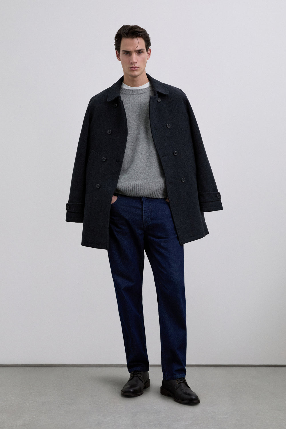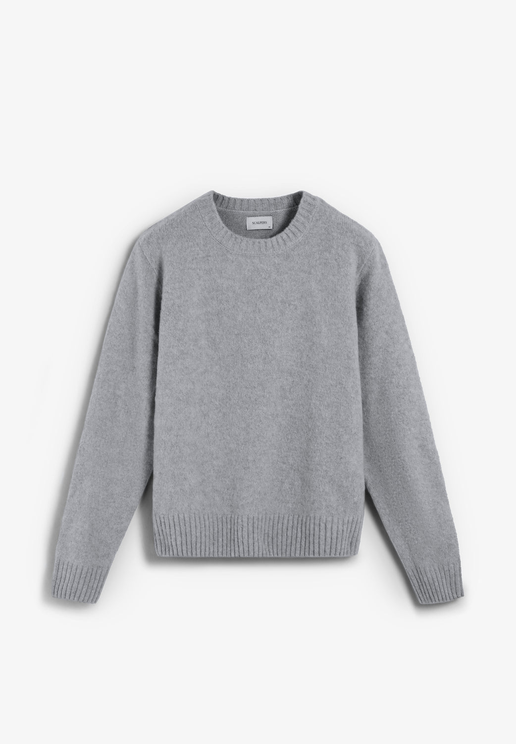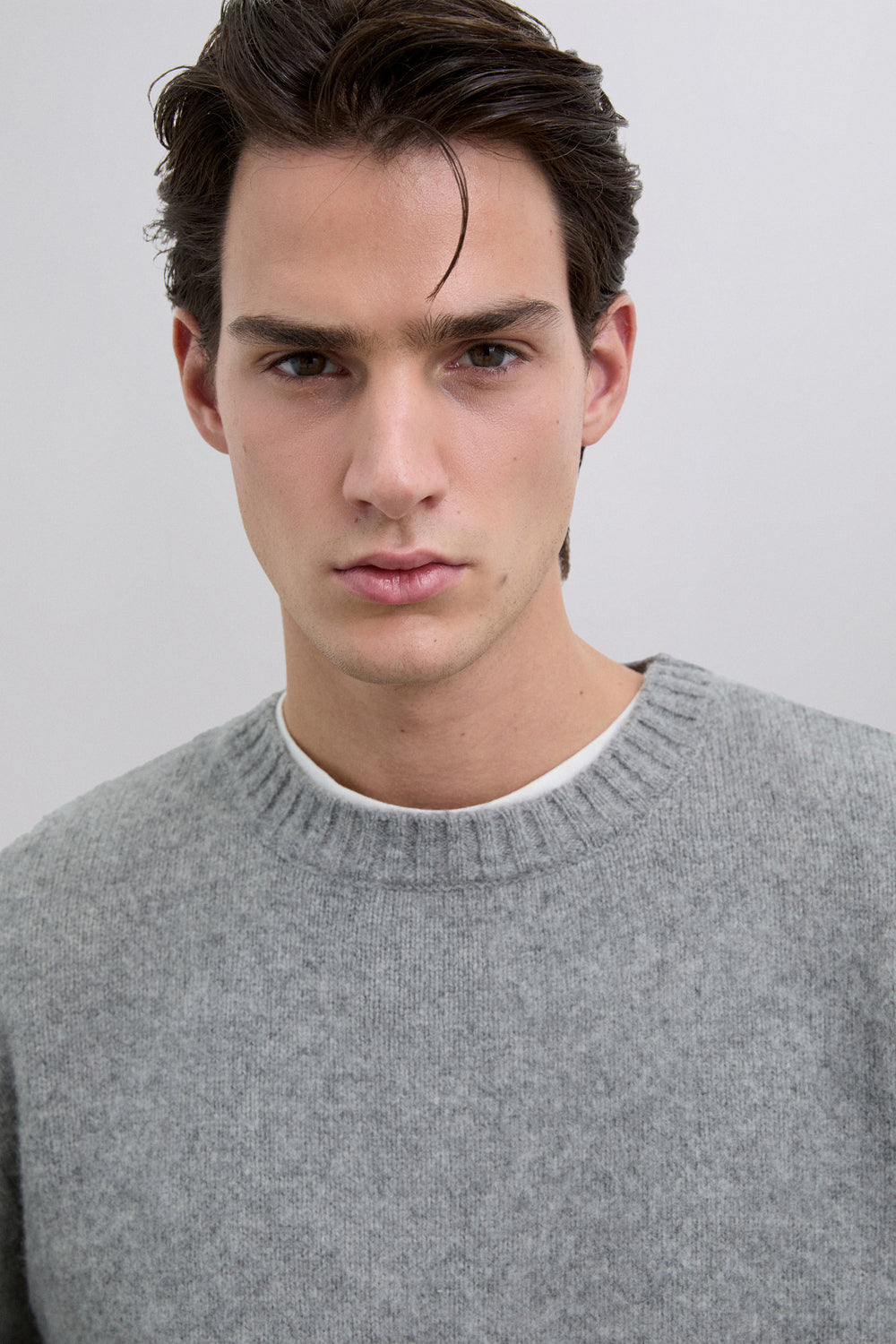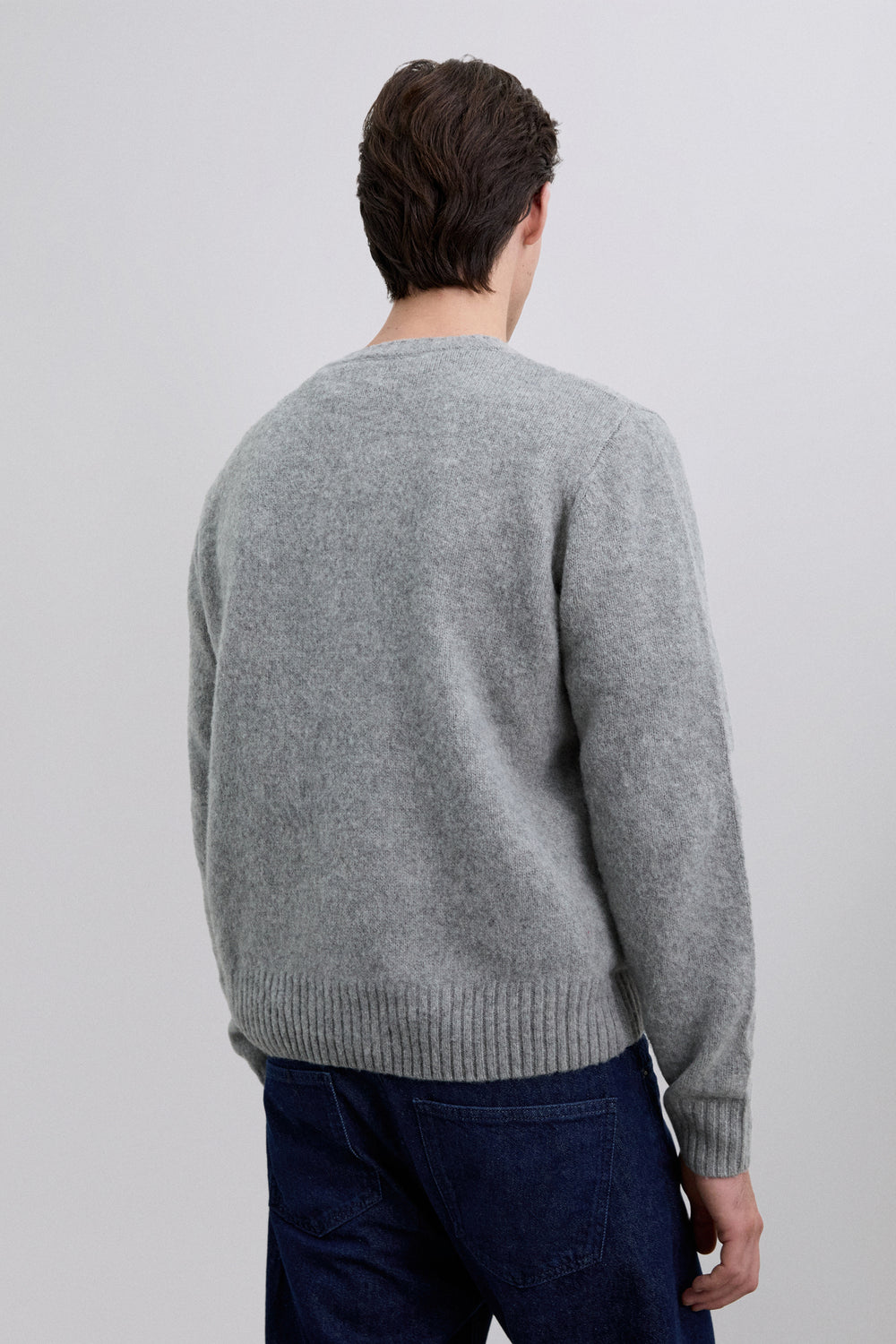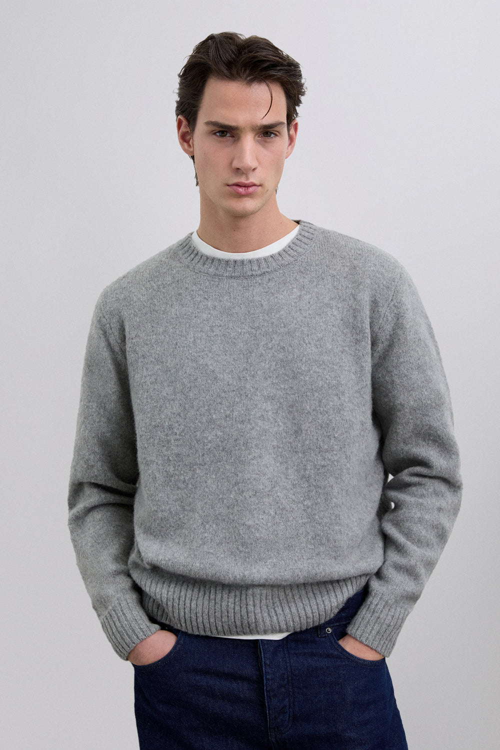 Jersey confeccionado en 100% lana. Efecto cepillado. Cuello redondo. Mangas largas. Corte regular. Acabados en rib.
