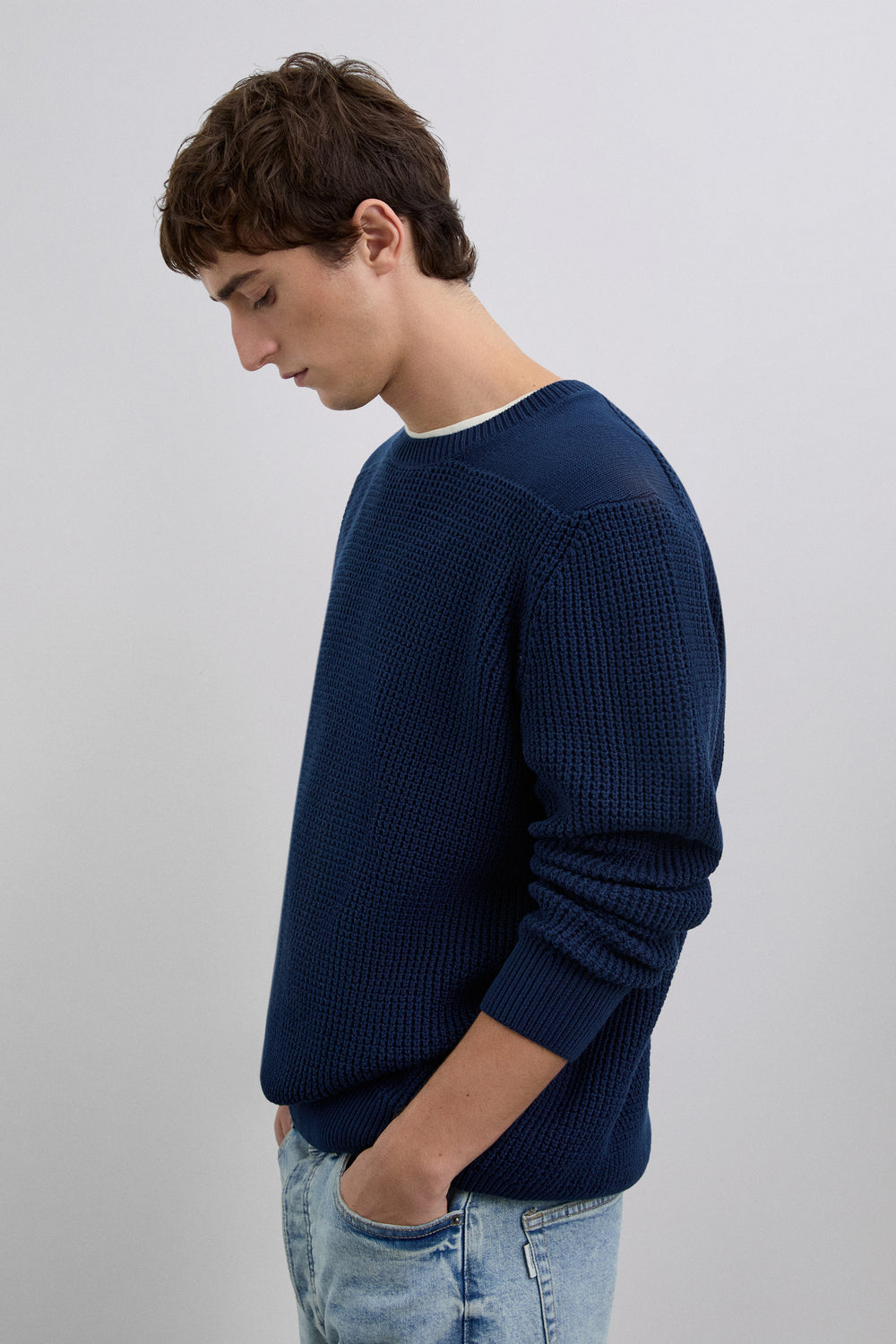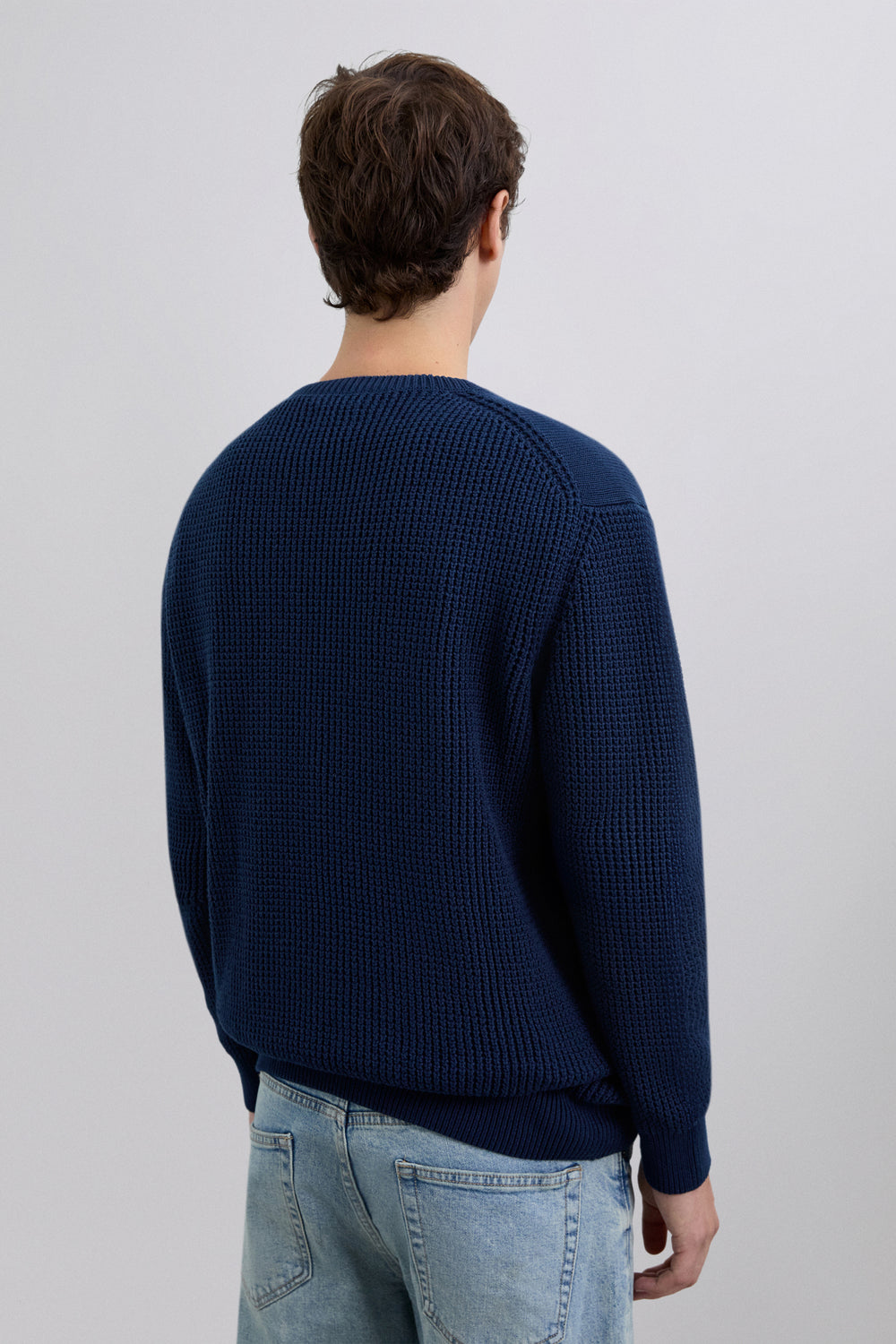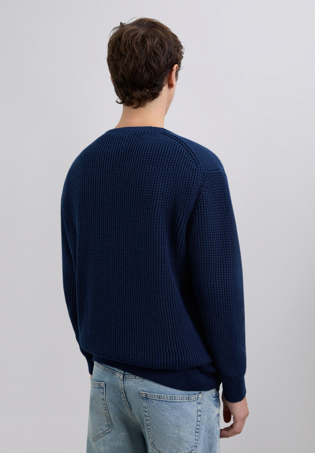 Jersey punto confeccionado en 100% algodón BCI. Regular Fit. Cuello redondo. Manga larga. Acabados acanalados.