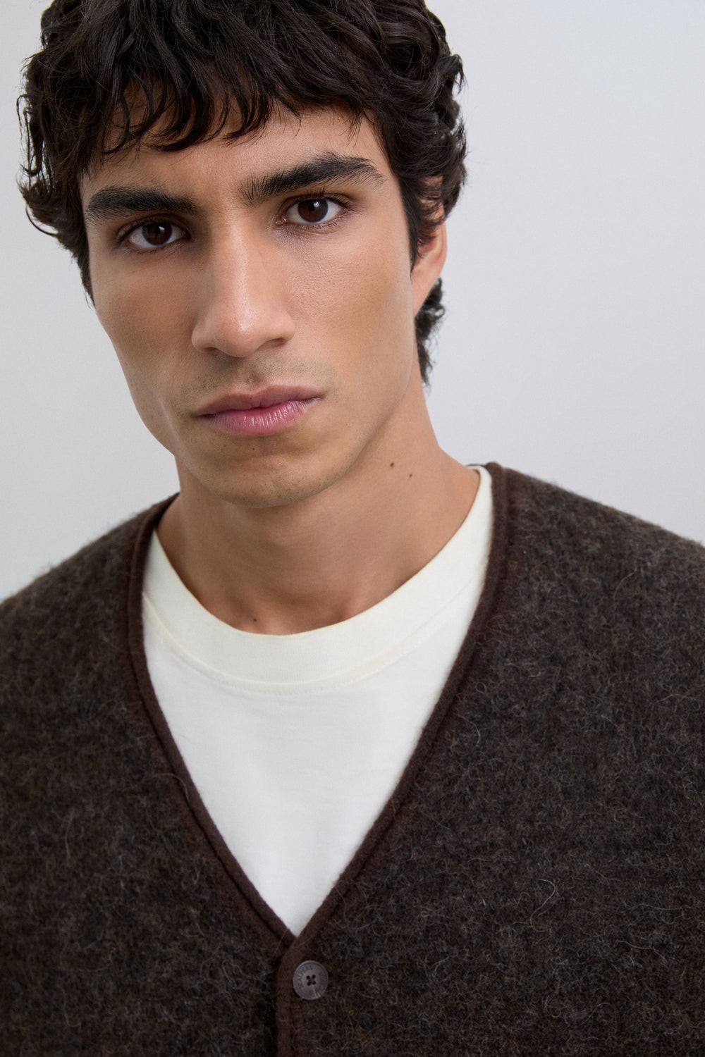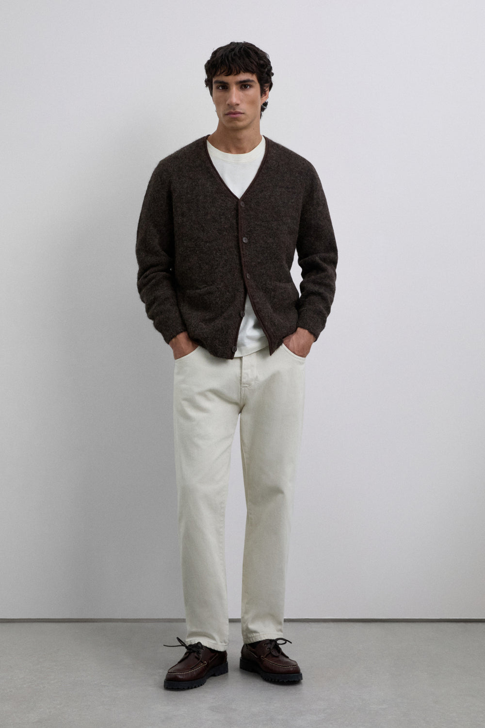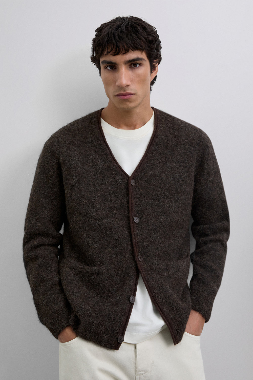 Cárdigan confeccionado en mezcla alpaca. Cuello en pico. Manga larga. Dos bolsillos frontales. Cierre mediante botonadura frontal.