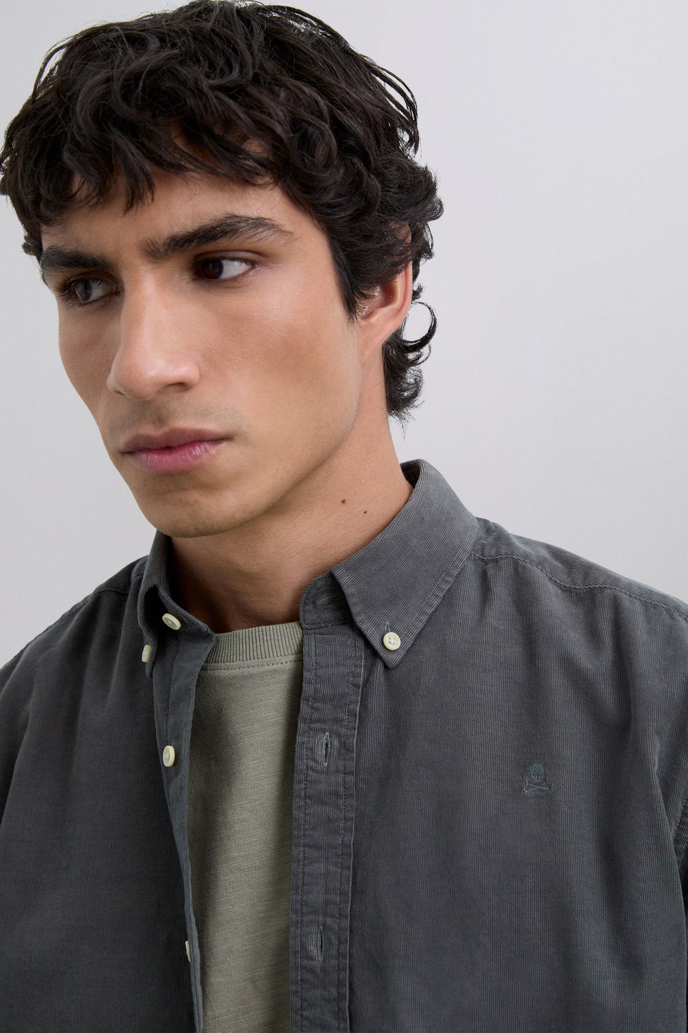 Camisa con calavera bordada en el pecho. Hecha de 100% algodón BCI. Corte regular. Cuello con botones. Mangas largas con puños abotonados. Cierre frontal con botones. Bolsillo en el pecho.