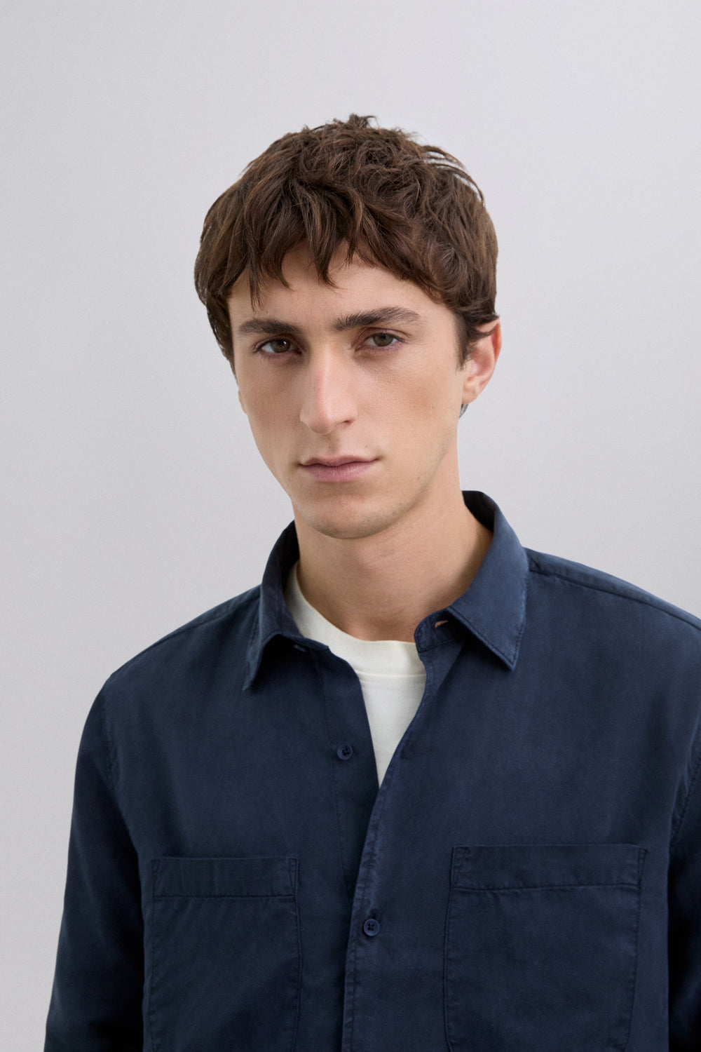 Camisa confeccionada en algodón. Slim fit. Abotonadura frontal. Mangas largas. Puños ajustables por botón. Bolsillos de parche en pecho.