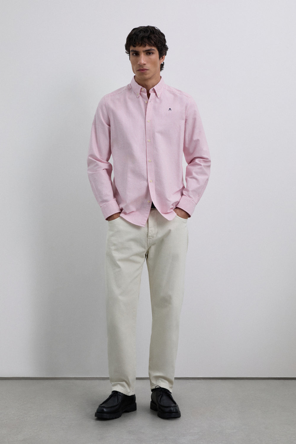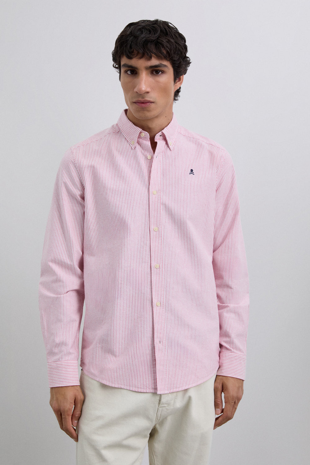 Camisa Oxford confeccionada en 100% algodón BCI. Cierre mediante abotonadura, Estampado de rayas. Manga larga con cierre mediante botón. Detalle de calavera bordada a contraste en pecho.
