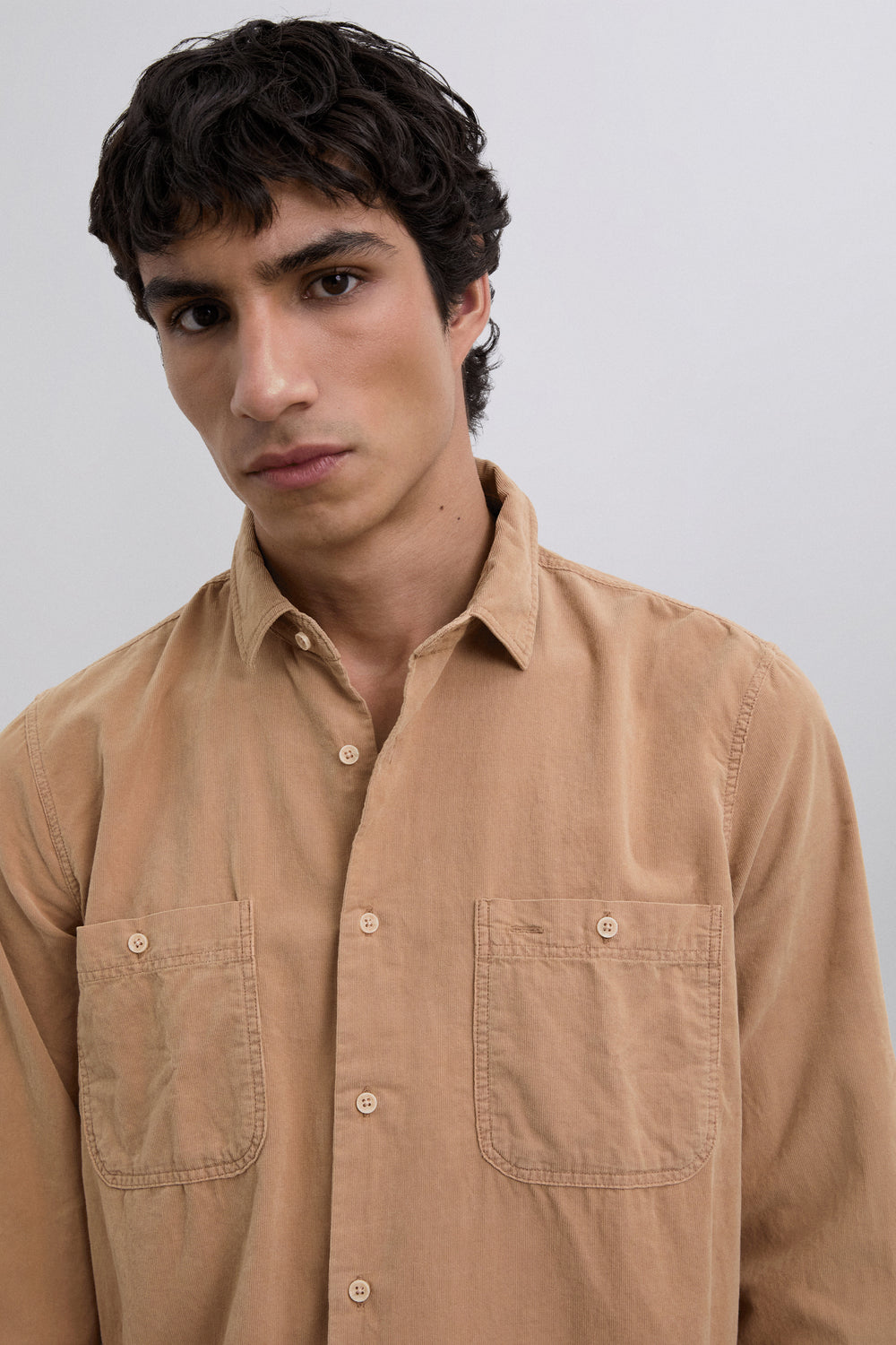 Camisa confeccionada en pana de 100% algodón BCI. Regular fit. Manga larga acabada en puño con botón. Bolsillos plastrón en pecho. Cierre frontal de botonadura.