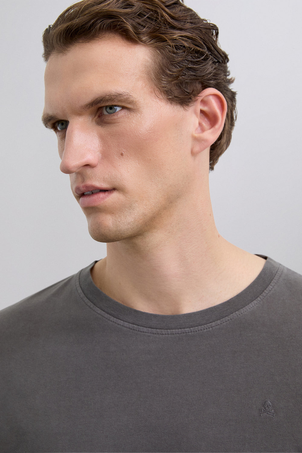 Camiseta confeccionada en 100% algodón BCI. Regular fit, cuello redondo y manga corta. Detalle de calavera bordada a tono.