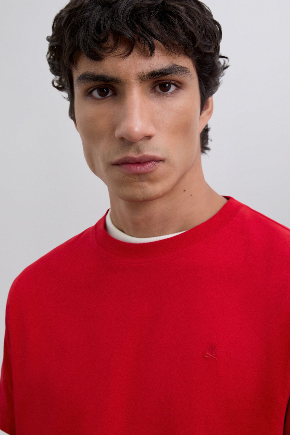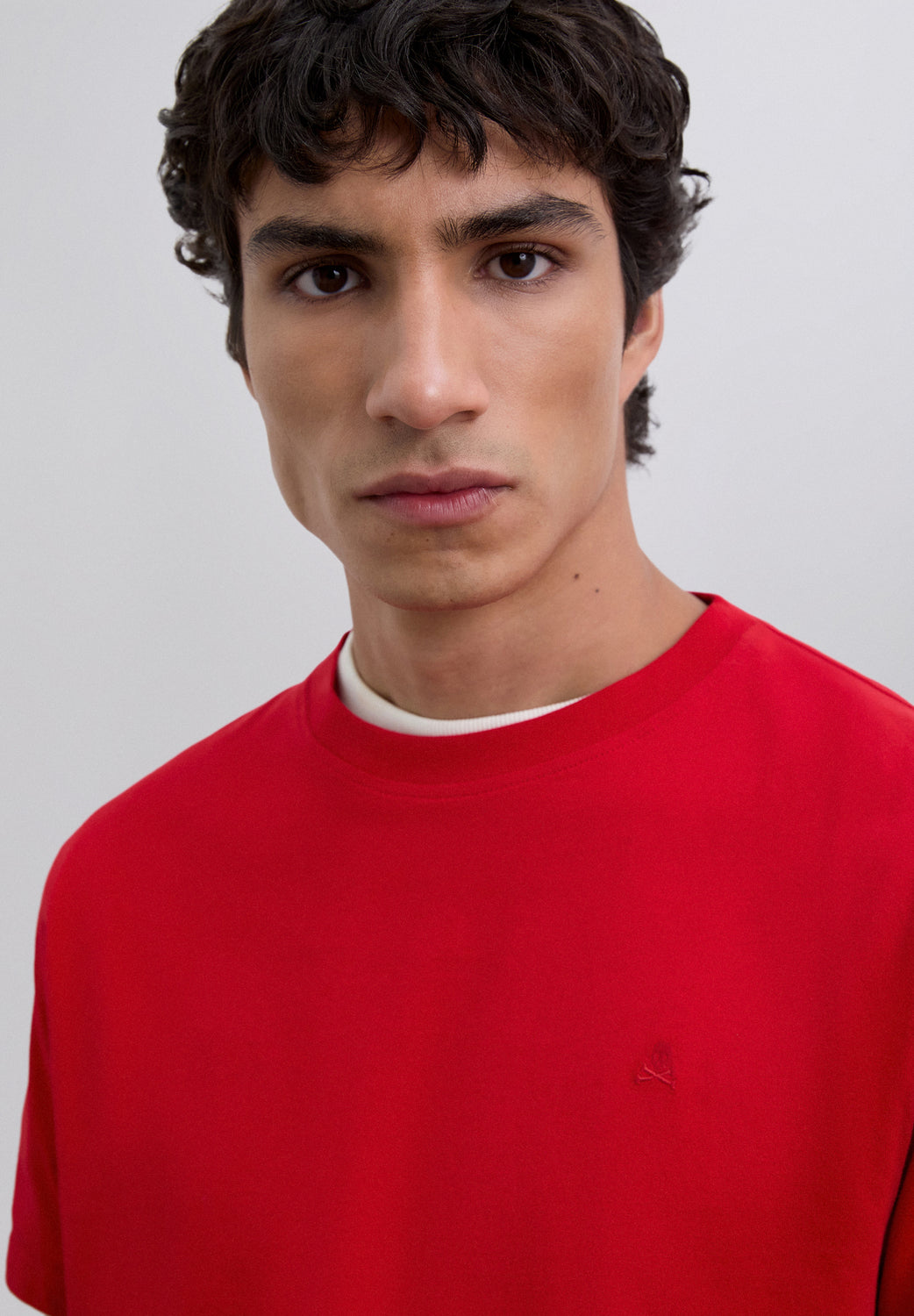 Camiseta confeccionada en 100% algodón BCI. Calavera bordada a tono. Corte Regular Fit. Cuello redondo. Manga corta.