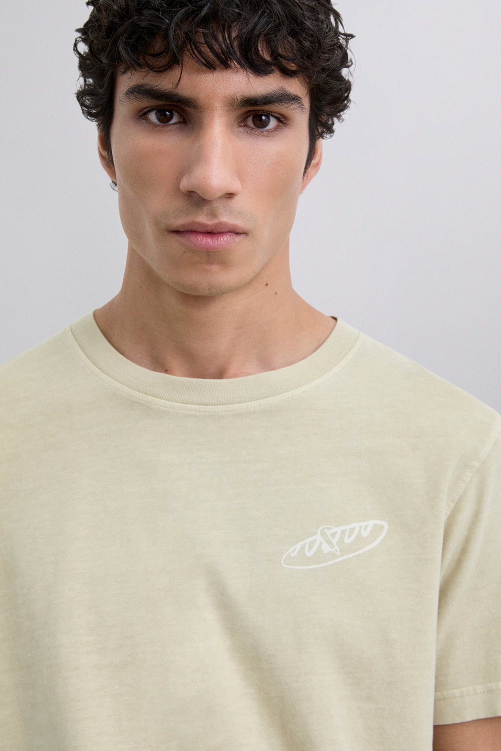 Camiseta con print en pecho y espalda. Confeccionada en 100% algodón BCI. Corte Regular Fit. Cuello redondo. Manga corta.