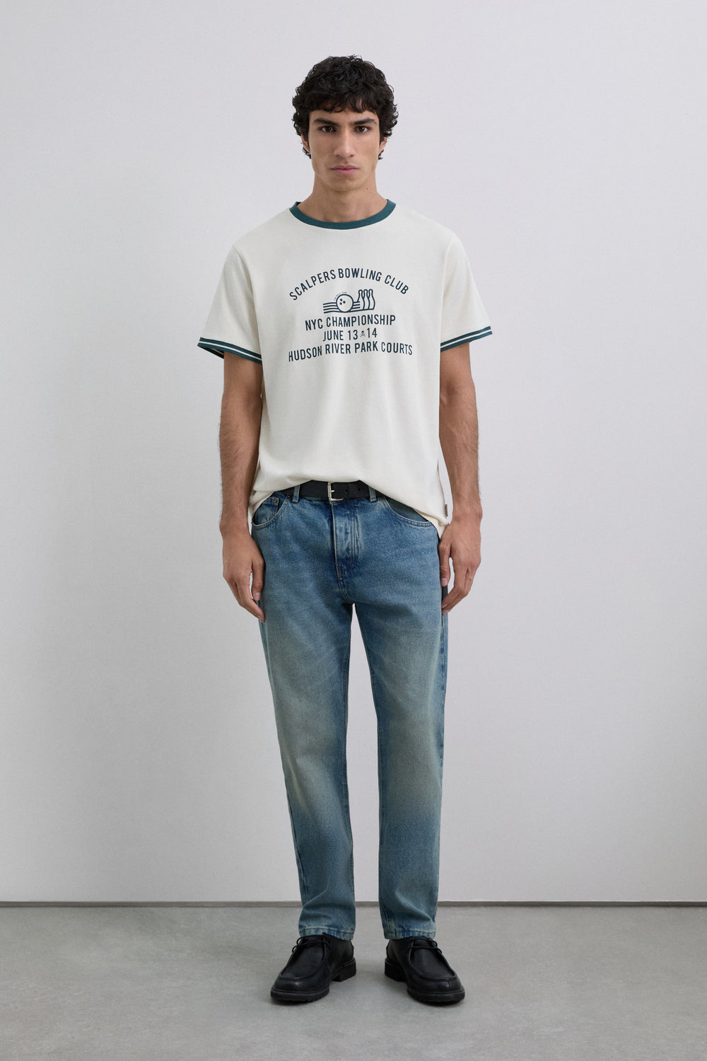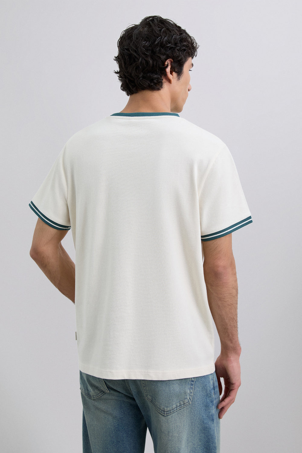 Camiseta confeccionada en 100% algodón BCI. Manga corta. Print frontal. Corte Regular Fit. Cuello y mangas acabados en rib a contraste.