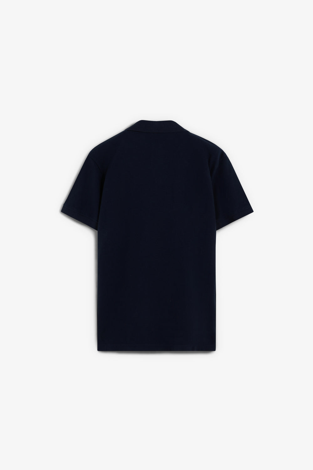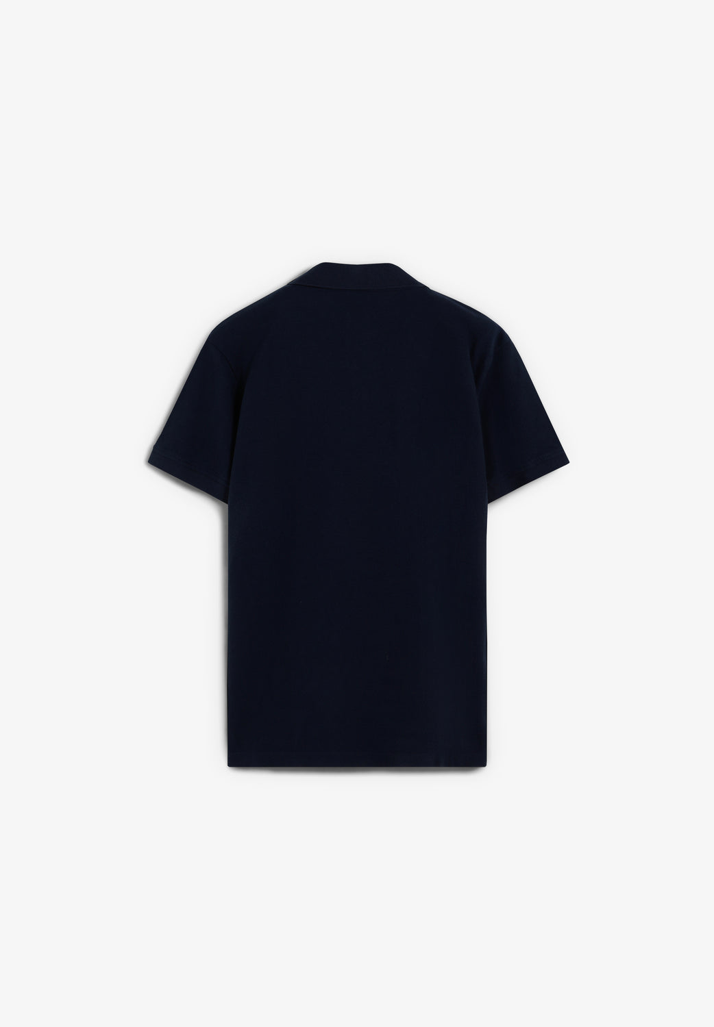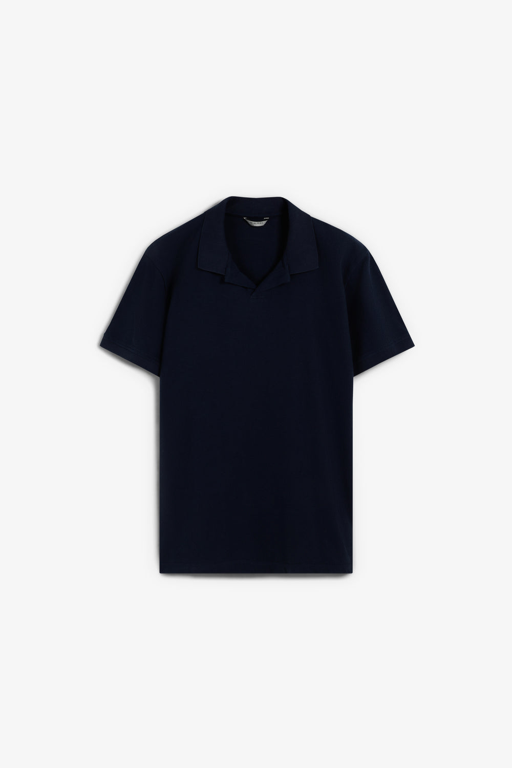 Polo de manga corta en punto rústico. Corte regular. Cuello abierto y puños de canalé.