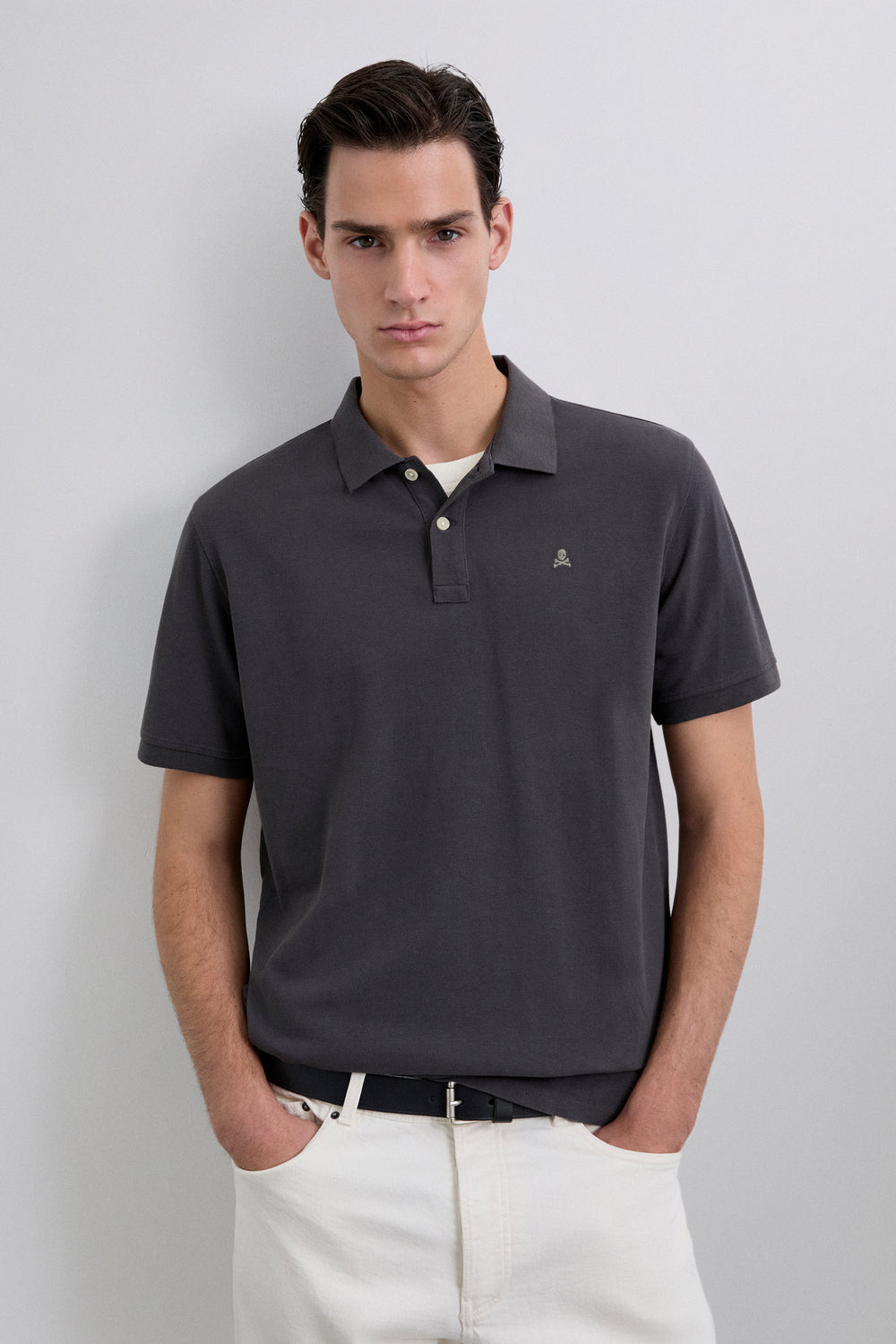 Polo de piqué confeccionado en 100% Algodón Orgánico. Manga corta. Corte Regular. Tapeta de dos botones. Cuello y puños de canalé. Calavera bordada a contraste en el pecho.