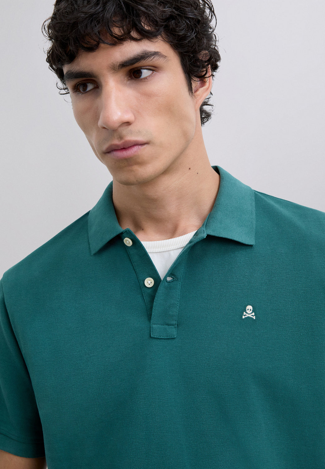 Polo de piqué confeccionado en 100% Algodón Orgánico. Manga corta. Corte Regular. Tapeta de dos botones. Cuello y puños de canalé. Calavera bordada a contraste en el pecho.