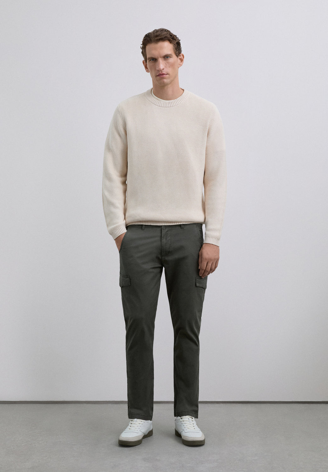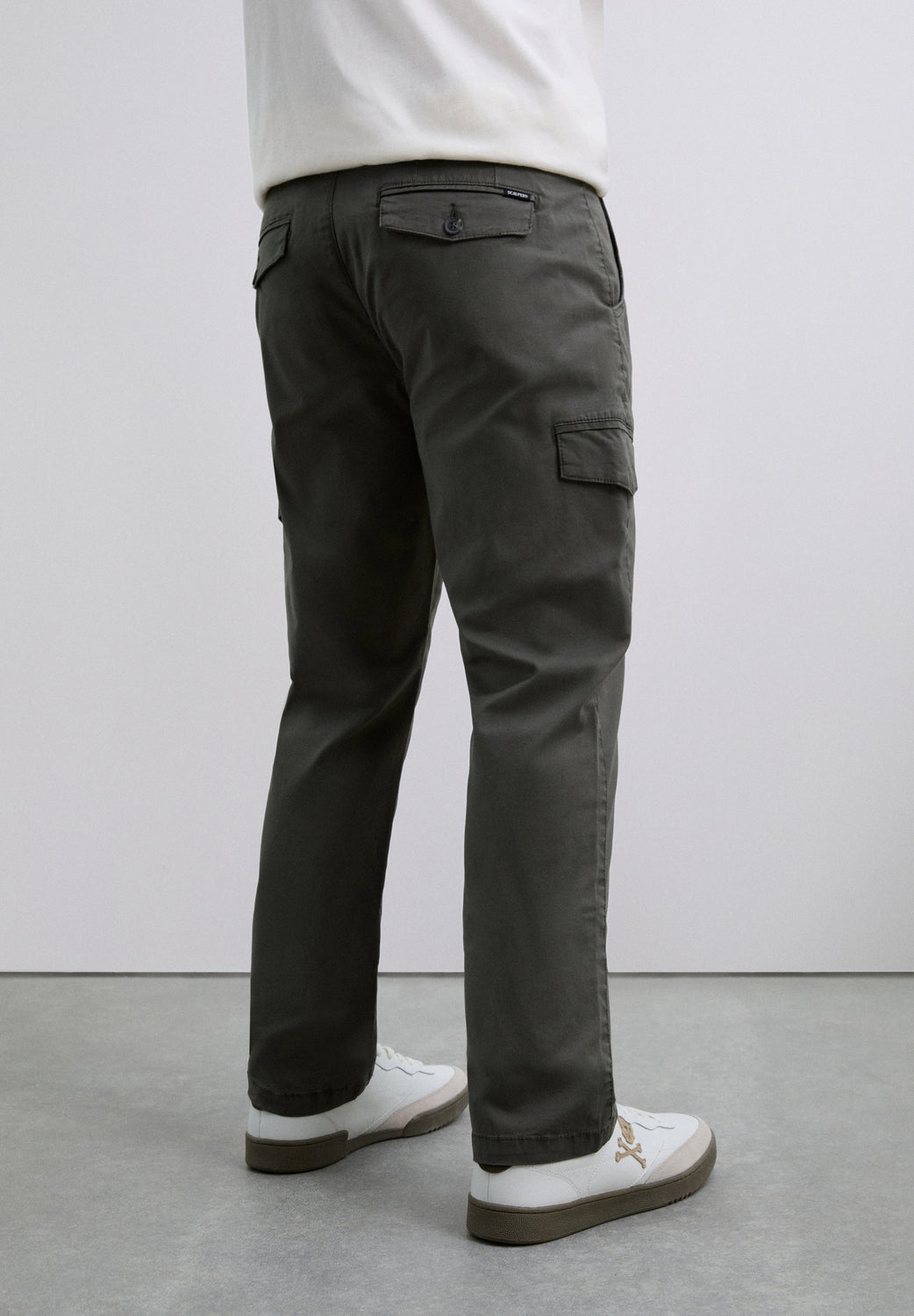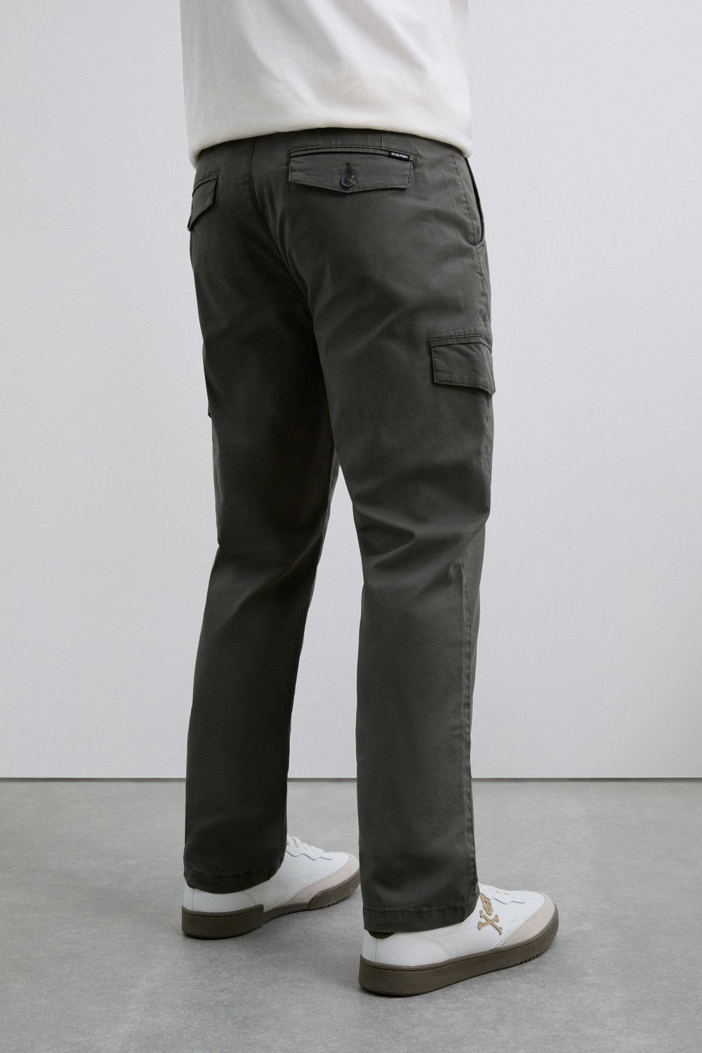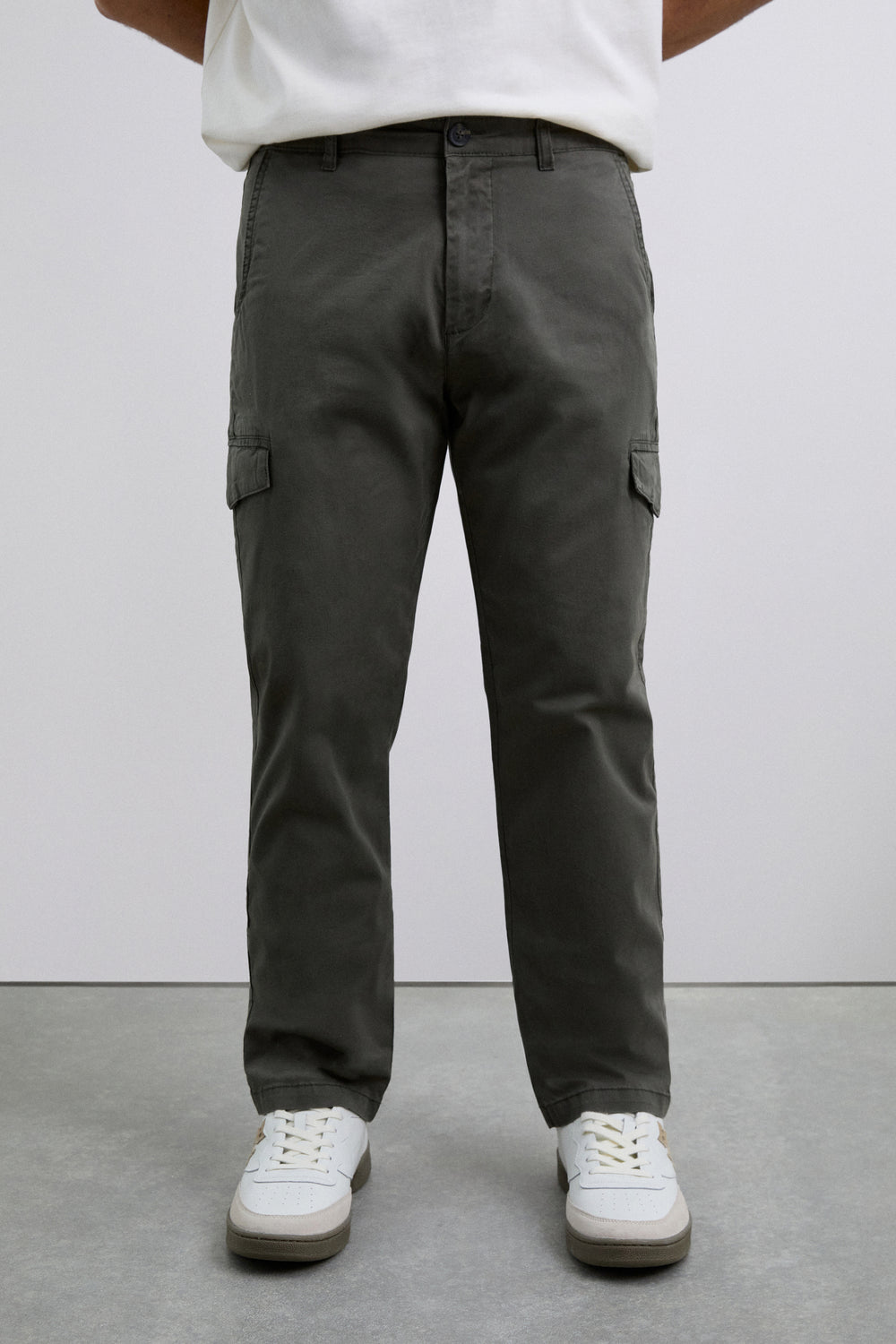 Pantalones cargo confeccionados en algodón BCI. Slim Fit. Dos bolsillos frontales, traseros con cierre mediante botón y laterales con tapeta. Cintura con trabillas y cierre mediante botón y cremallera. Detalle de logo en bolsillo trasero.
