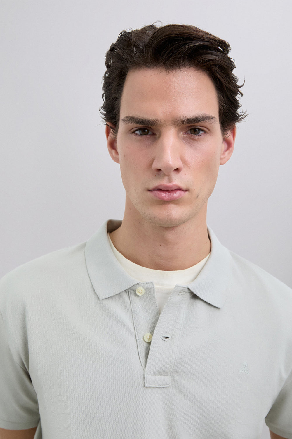 Polo básico confeccionado en 100% algodón BCI. Regular fit, cuello clásico y cierre con botones. Manga corta y calavera bordada a tono.