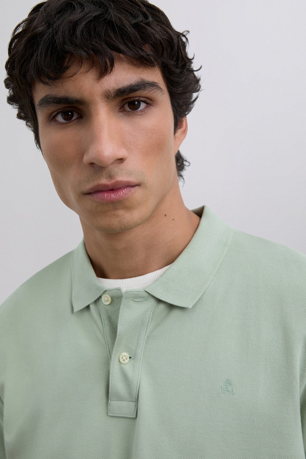 Polo básico confeccionado en 100% algodón BCI. Regular fit, cuello clásico y cierre con botones. Manga corta y calavera bordada a tono.