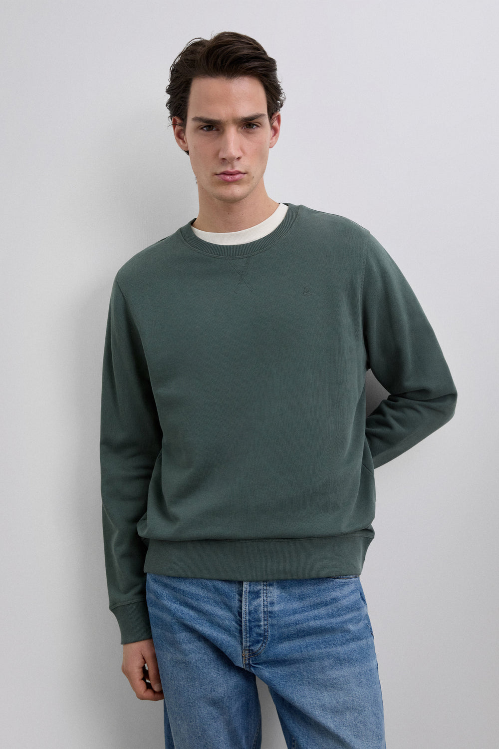 Sudadera confeccionada en 100% algodón BCI. Manga larga. Cuello redondo. Acabados en rib. Detalle de logotipo bordado en pecho.