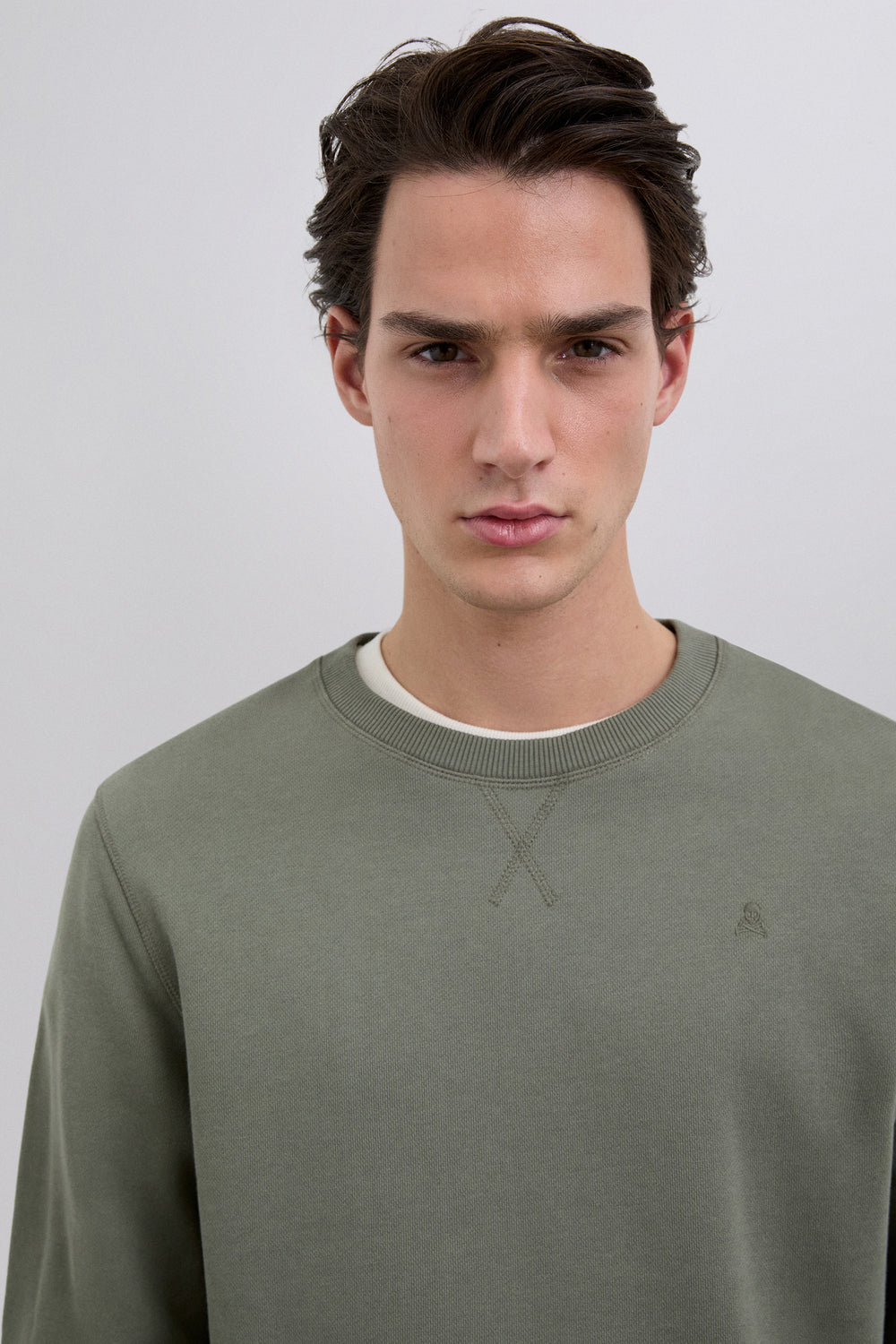 Sudadera confeccionada en 100% algodón BCI. Manga larga. Cuello redondo. Acabados en rib. Detalle de logotipo bordado en pecho.