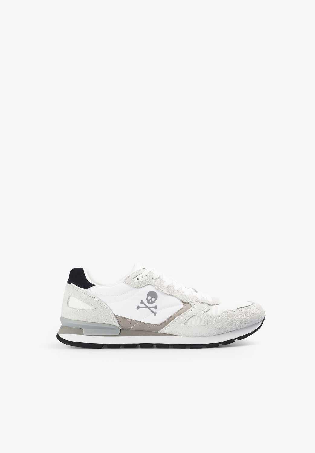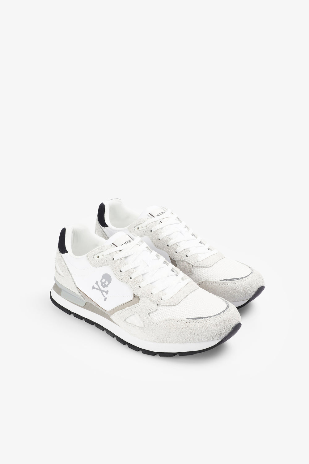 Sneakers confeccionadas en piel. Cierre con cordones a tono. Suela de goma y eva con estabilizador a contraste. Calavera printeada en goma de alta densidad en el lateral. Logo bordado en talón.