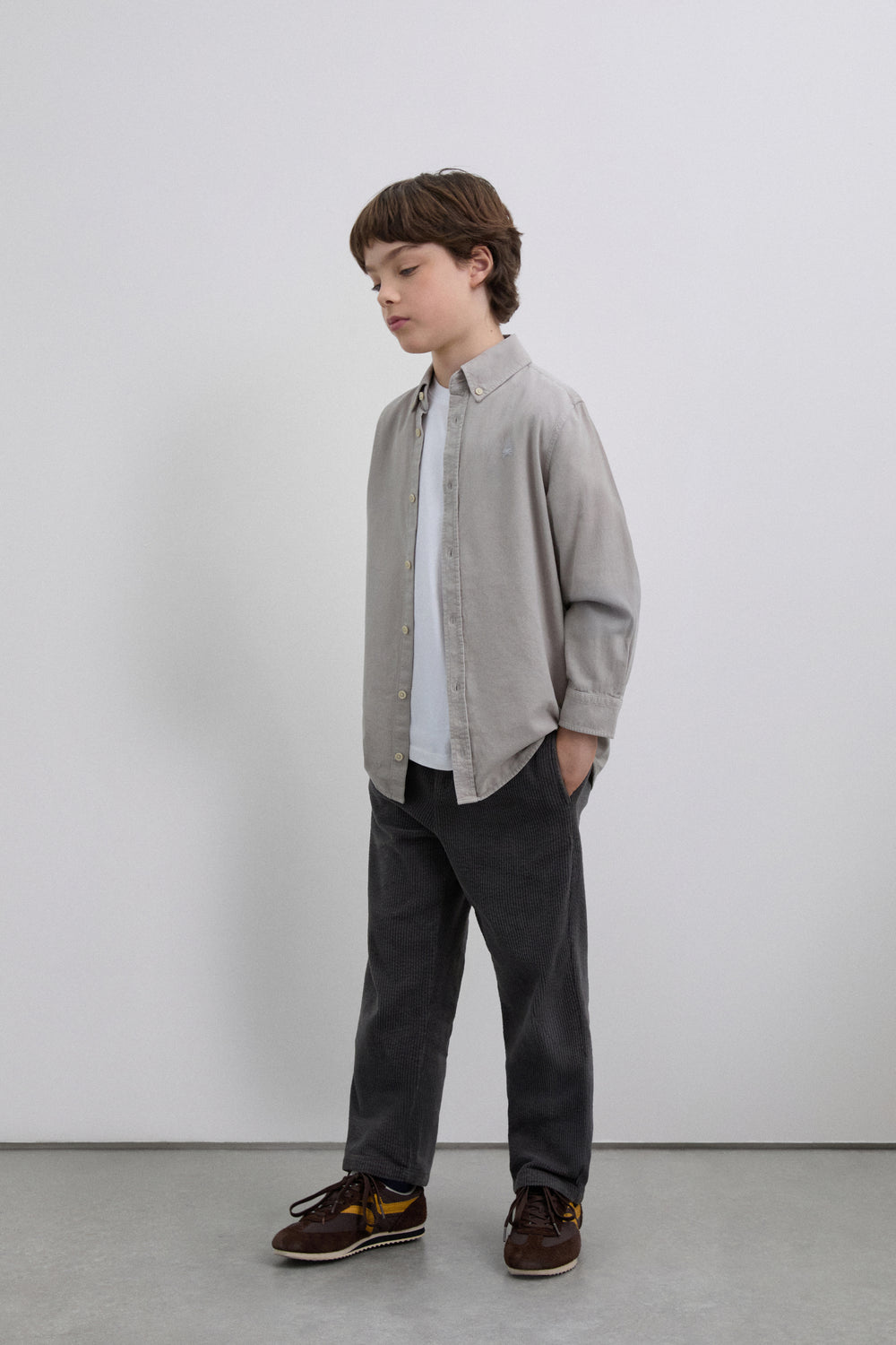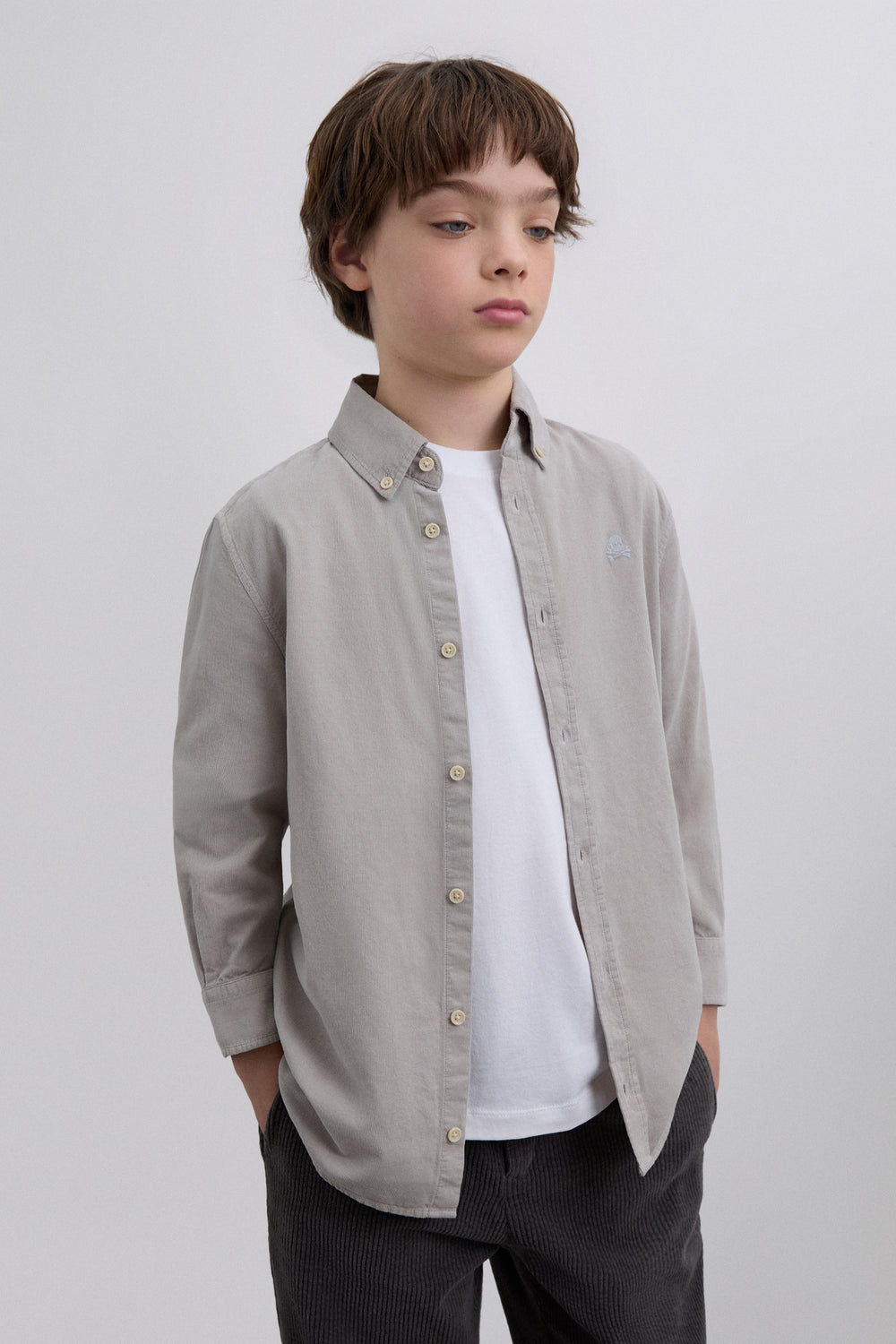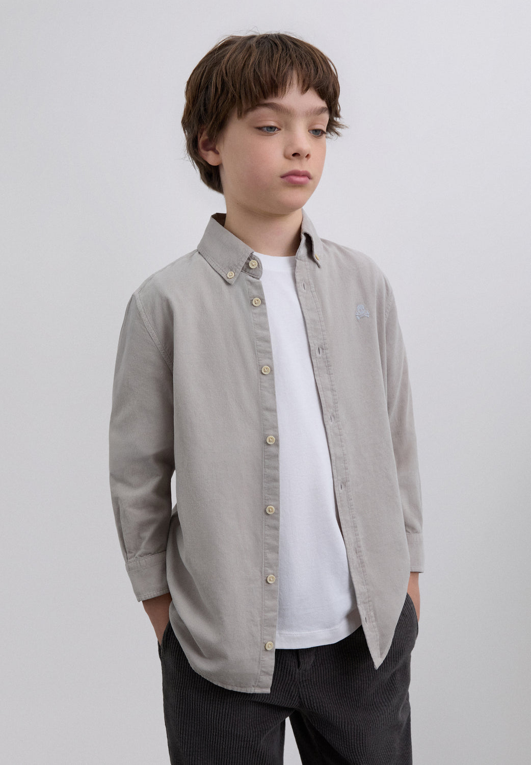 Camisa Oxford confeccionada en micropana. Regular Fit. Cuello clásico y cierre con botones. Manga larga con puños terminados mediante botón. Calavera bordada en pecho a contraste. Detalle de etiqueta frontal inferior metalizada con logo.