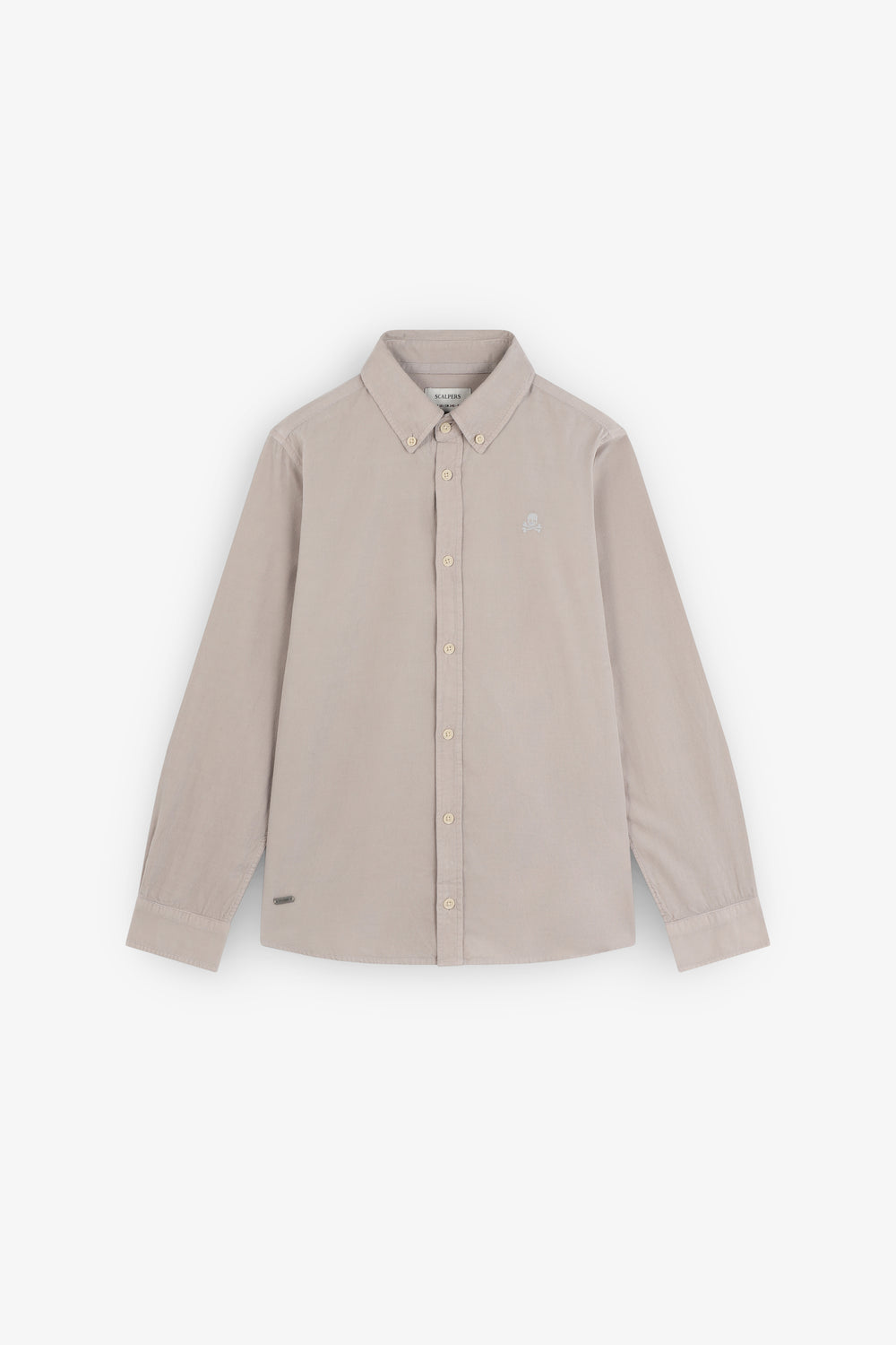 Camisa Oxford confeccionada en 100% algodón BCI. Regular Fit. Cuello clásico y cierre con botones. Manga larga con puños terminados mediante botón. Calavera bordada en pecho a contraste. Detalle de etiqueta frontal inferior metalizada con logo.