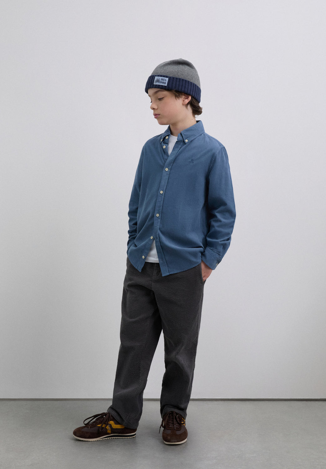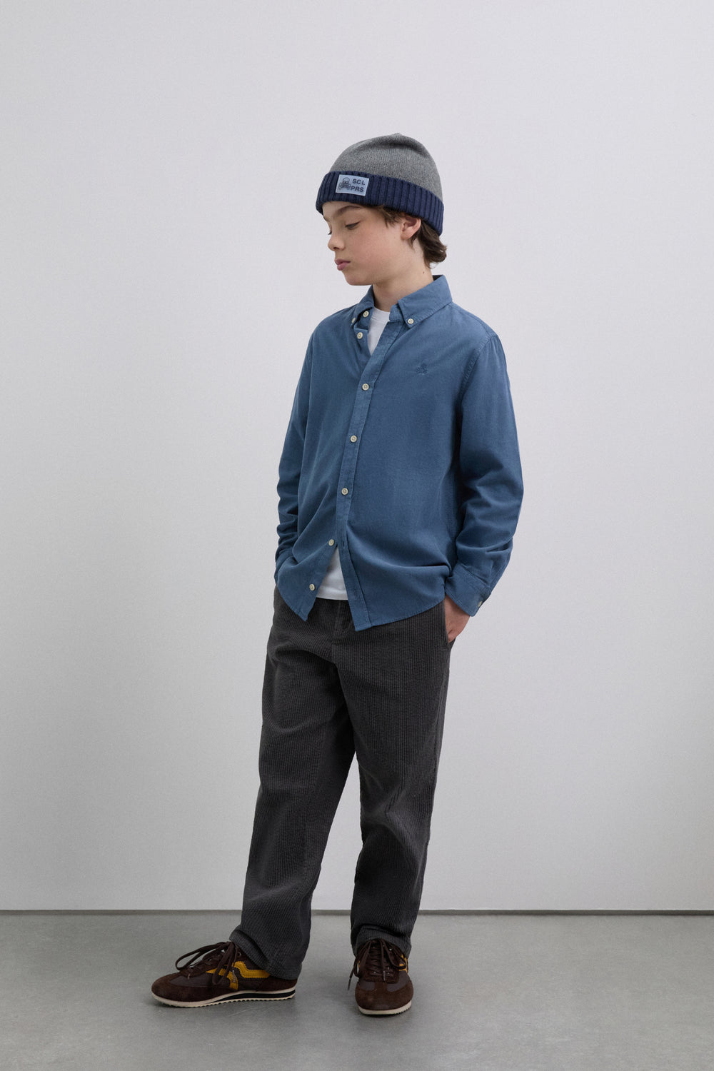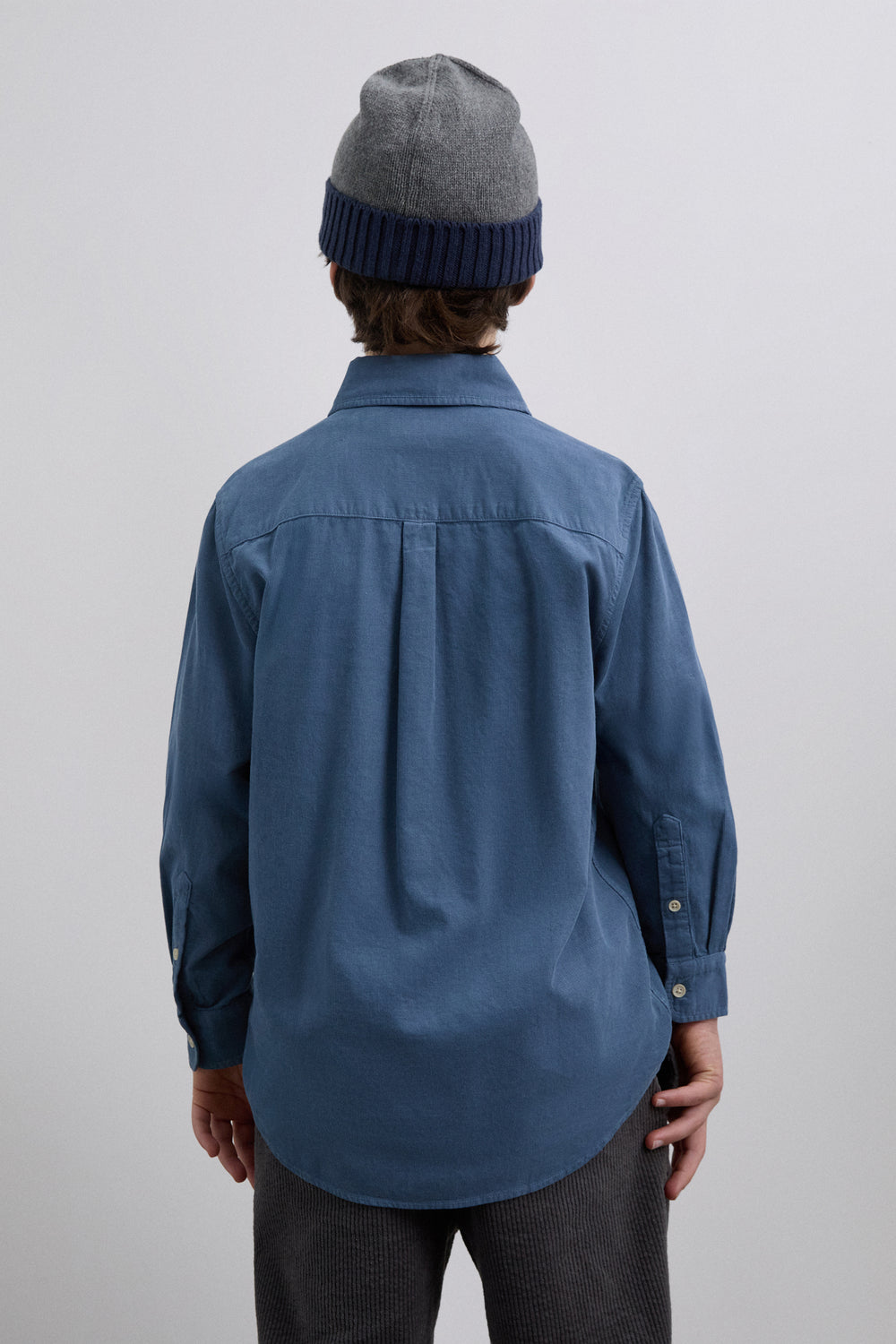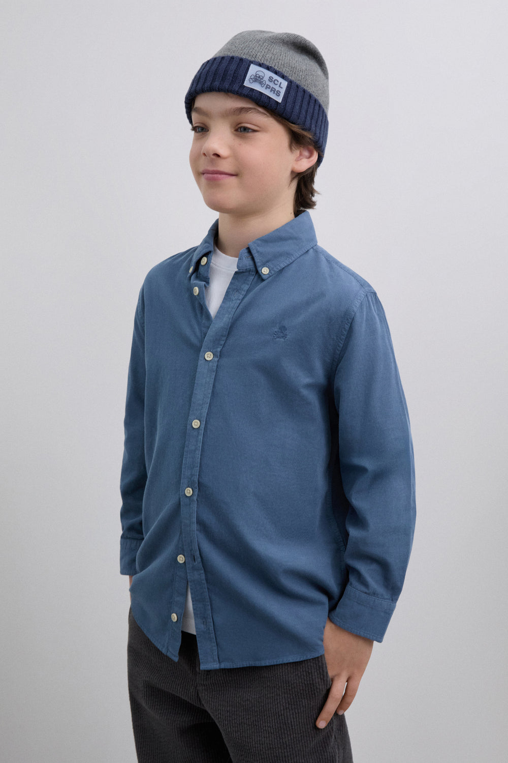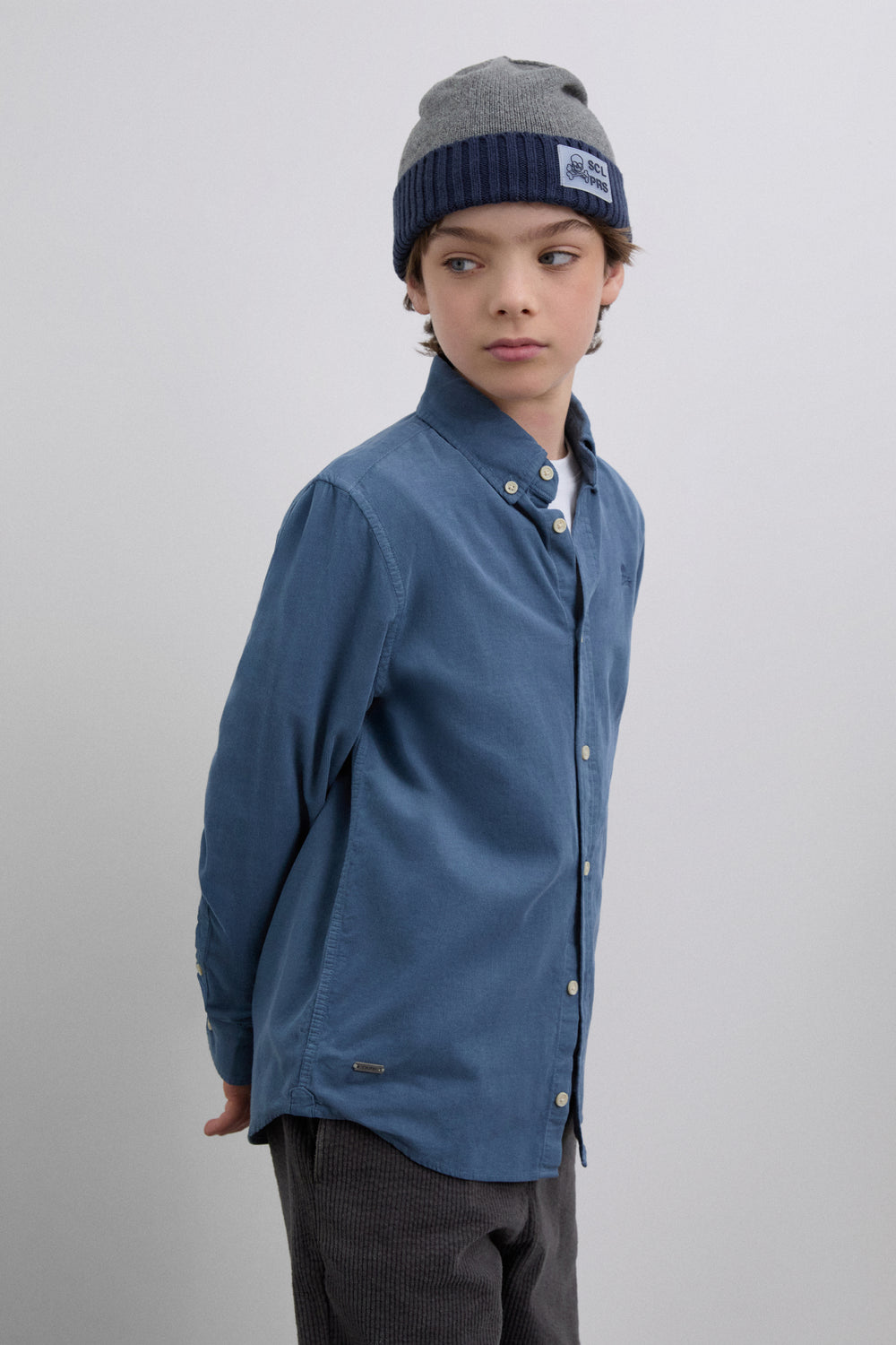 Camisa Oxford confeccionada en micropana. Regular Fit. Cuello clásico y cierre con botones. Manga larga con puños terminados mediante botón. Calavera bordada en pecho a contraste. Detalle de etiqueta frontal inferior metalizada con logo.