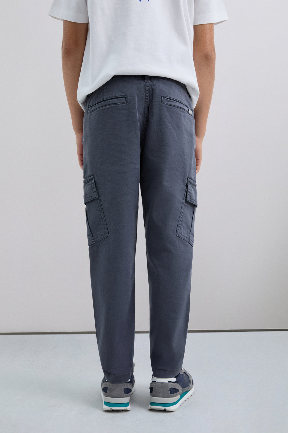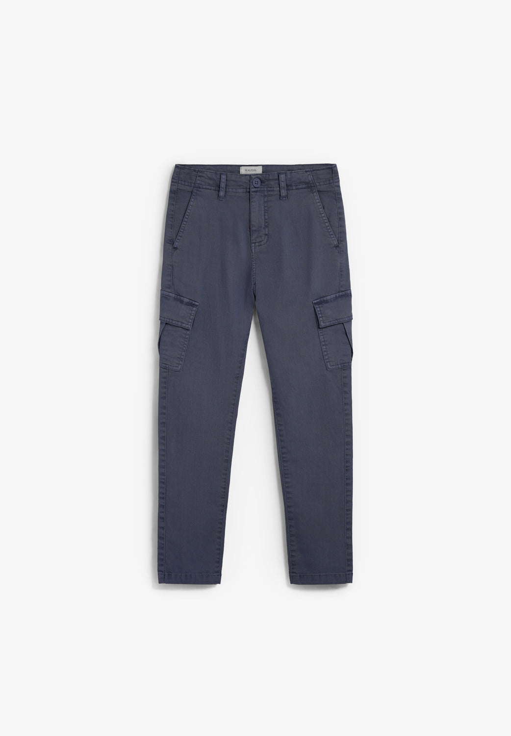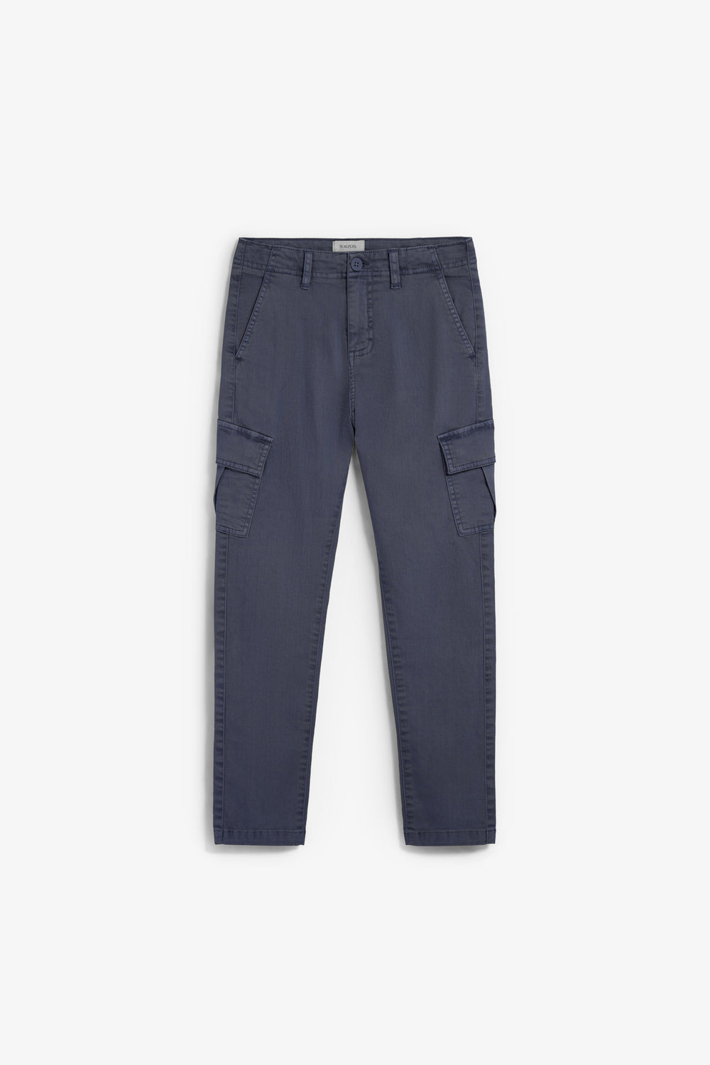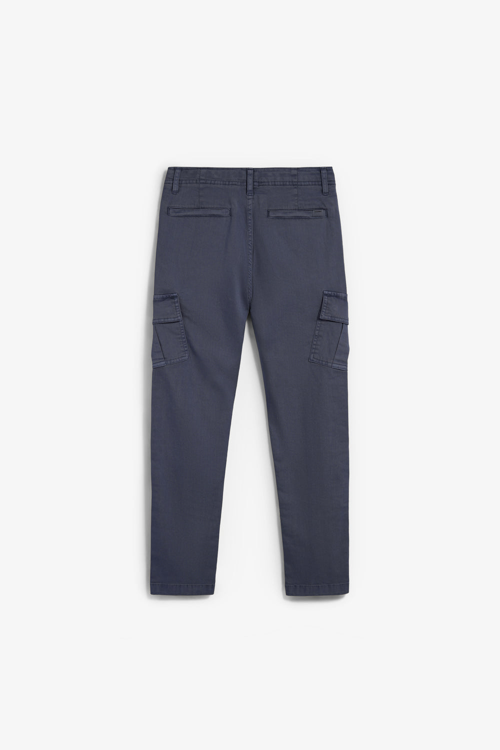 Pantalón cargo confeccionado en algodón BCI ligeramente elástico. Regular fit, cierre con botón y cremallera y bolsillos laterales. Trabillas en cintura y bolsillos en pernera con tapeta.
