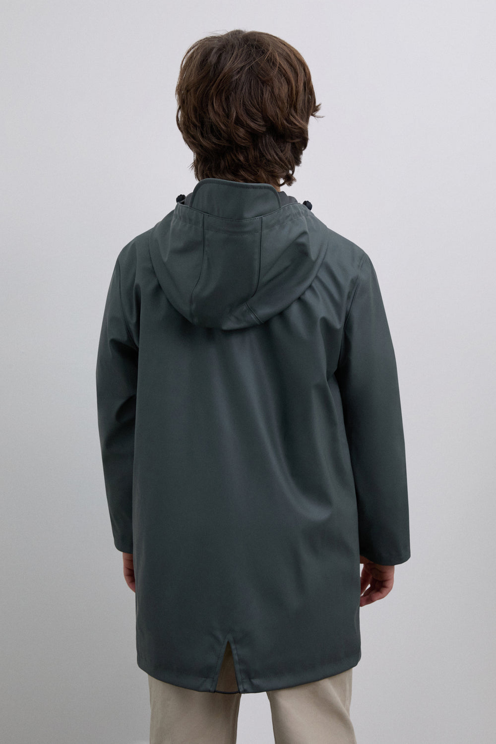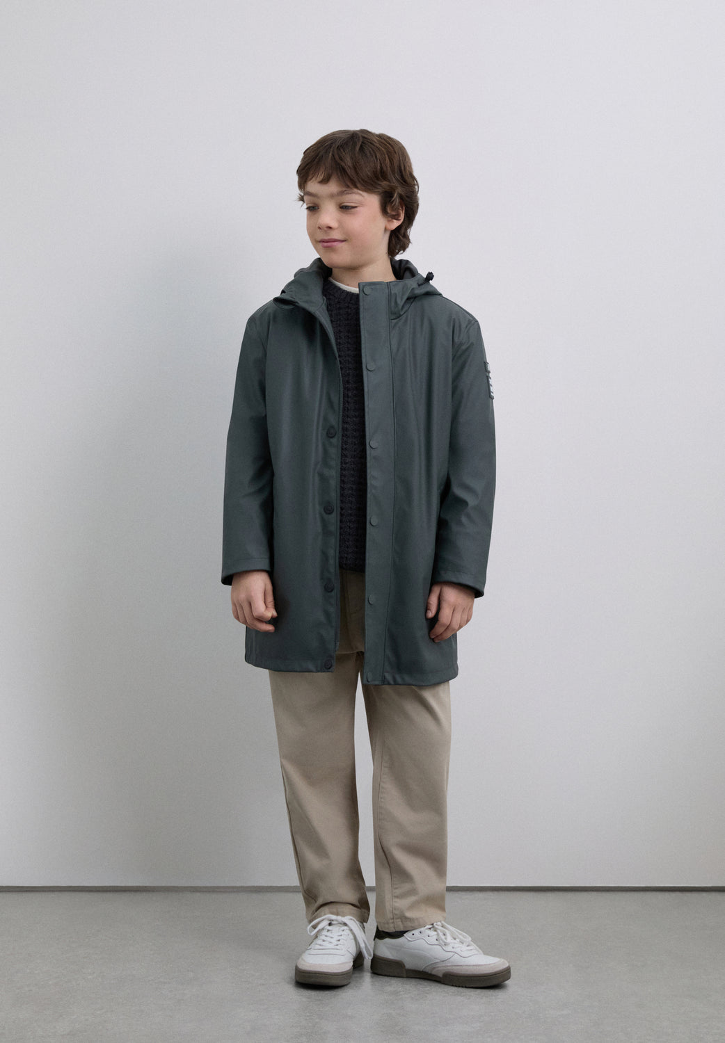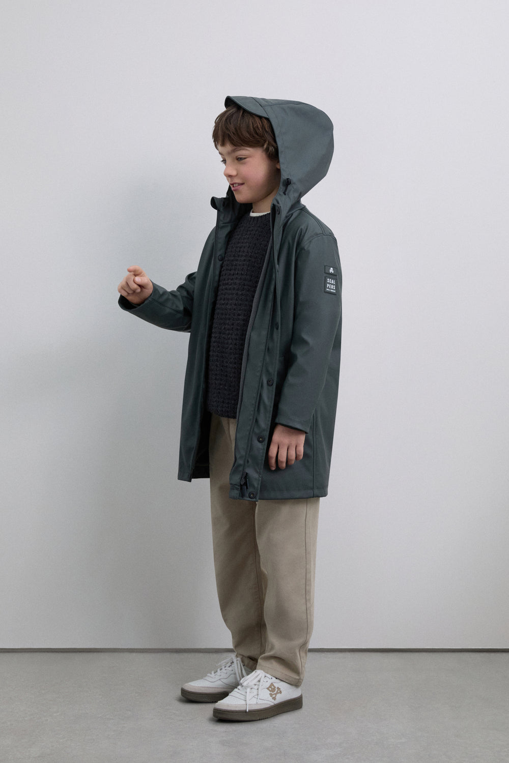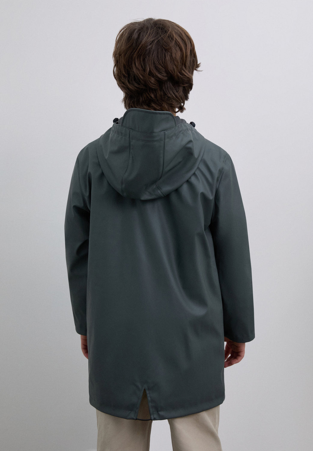Parka impermeable con capucha ajustable. Bolsillos laterales con tapeta y snap. Forro interior sintético. Detalle de parche engomado con logo y calavera. Cierre mediante abotonadura. Manga larga.