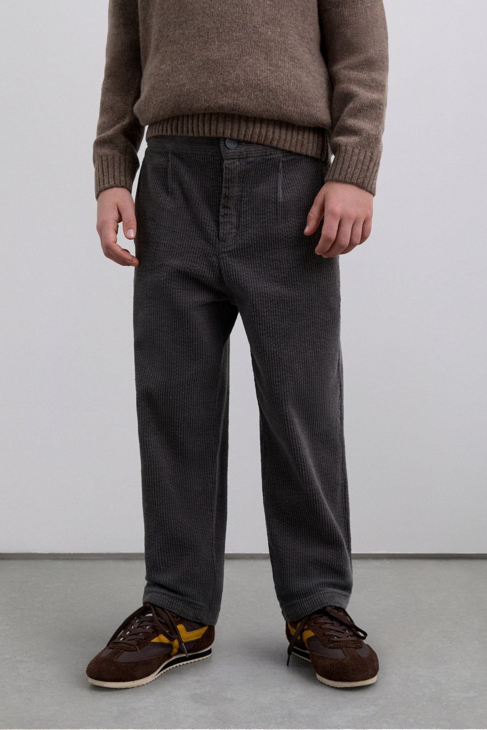 Pantalón recto de pana confeccionado en mezcla de algodón ligeramente elástico. Cierre mediante botón. Bolsillos inclinados delanteros y traseros. Detalle de etiqueta trasera con logo.