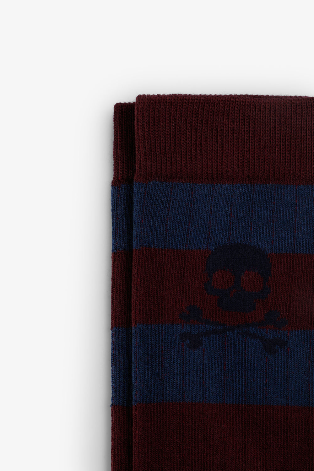 Calcetines confeccionados en mezcla de algodón orgánico. Estampado de rayas. Detalle de calavera bordada a contraste. Detalle logo a contraste parte inferior.