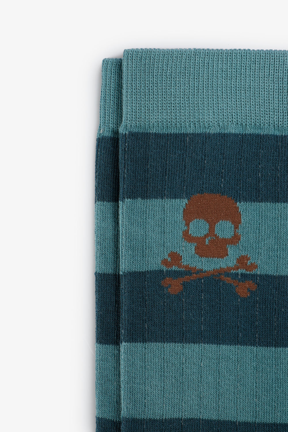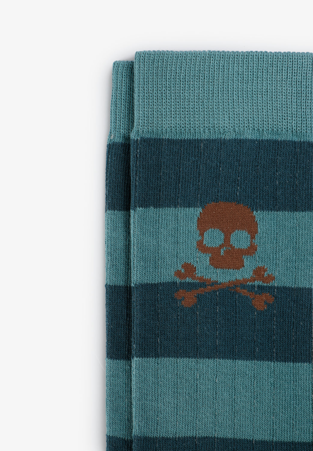 Calcetines confeccionados en mezcla de algodón orgánico. Estampado de rayas. Detalle de calavera bordada a contraste. Detalle logo a contraste parte inferior.