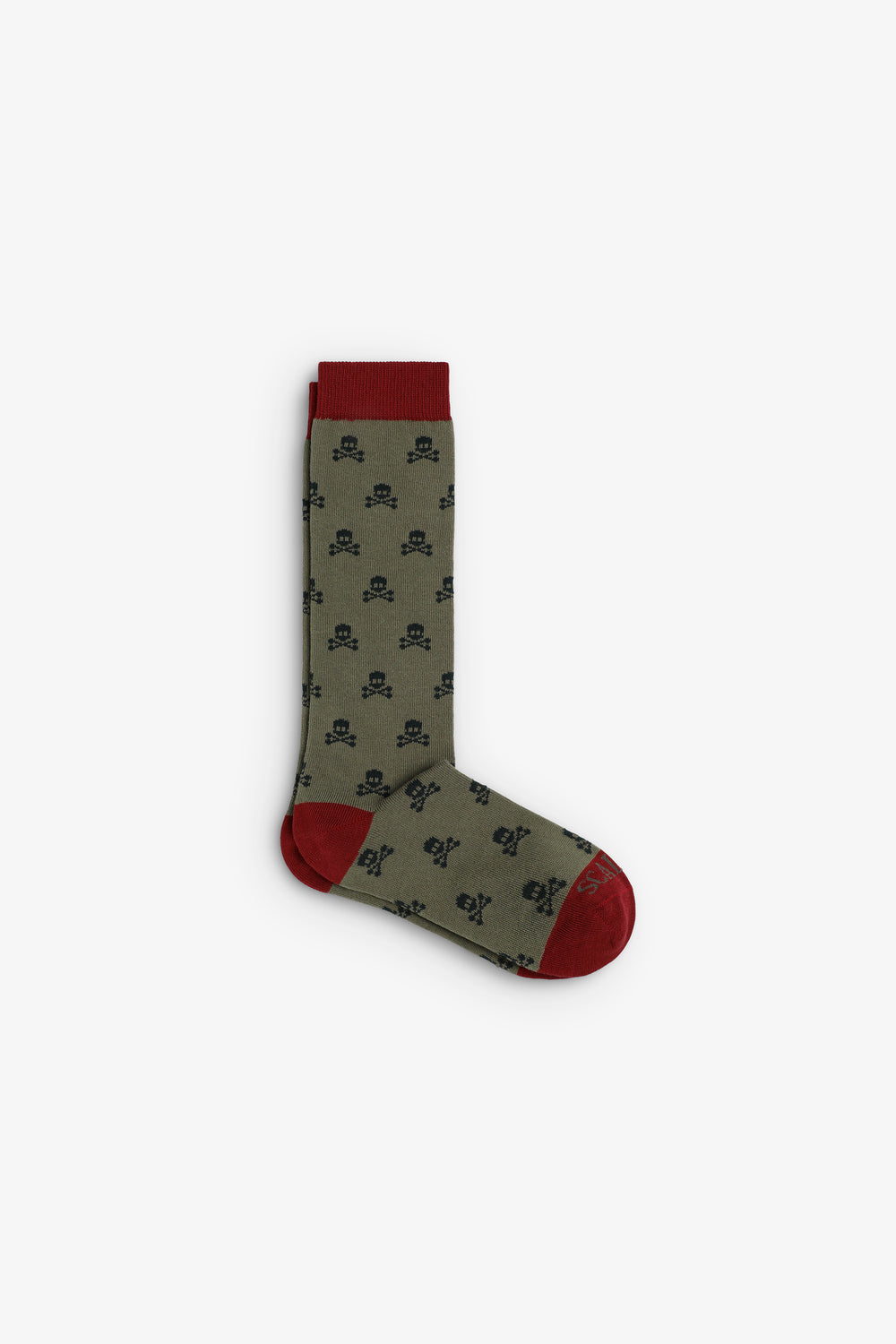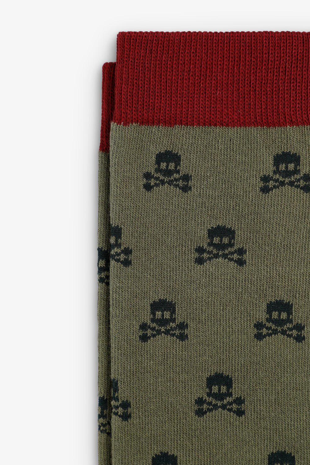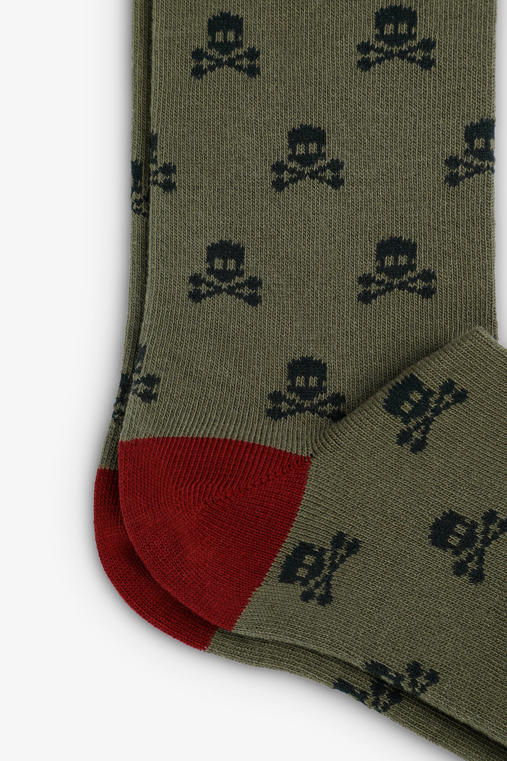 Calcetines largos confeccionados en mezcla de algodón. Estampado de calaveras. Puntera y talón a contraste. Detalle de logo a contraste.