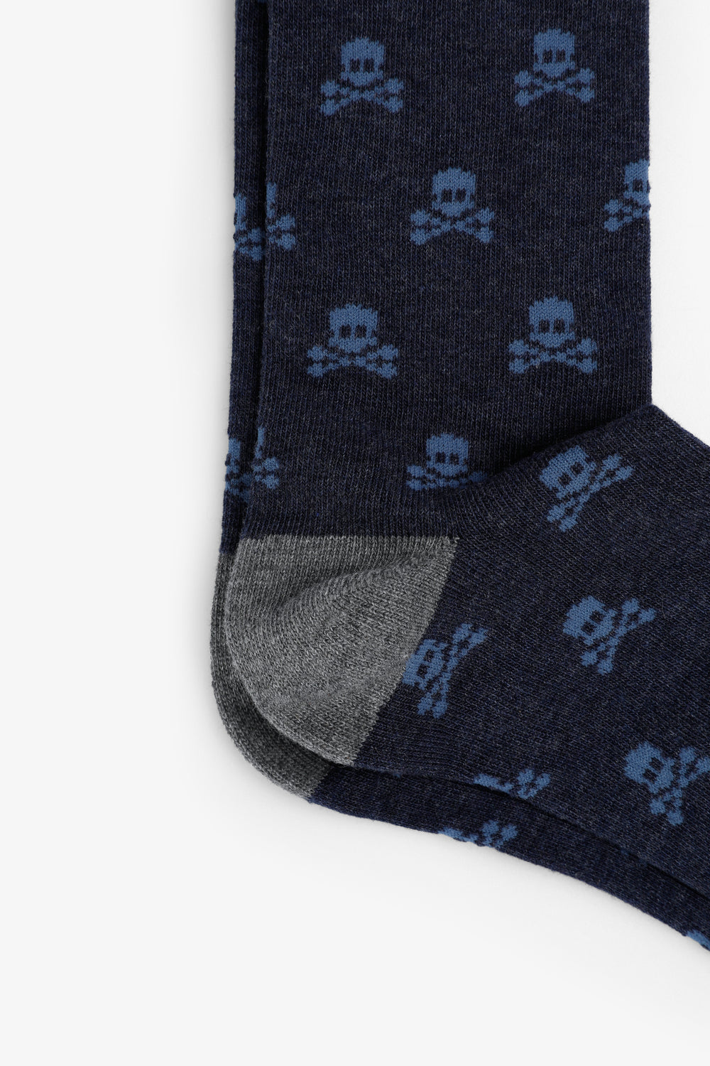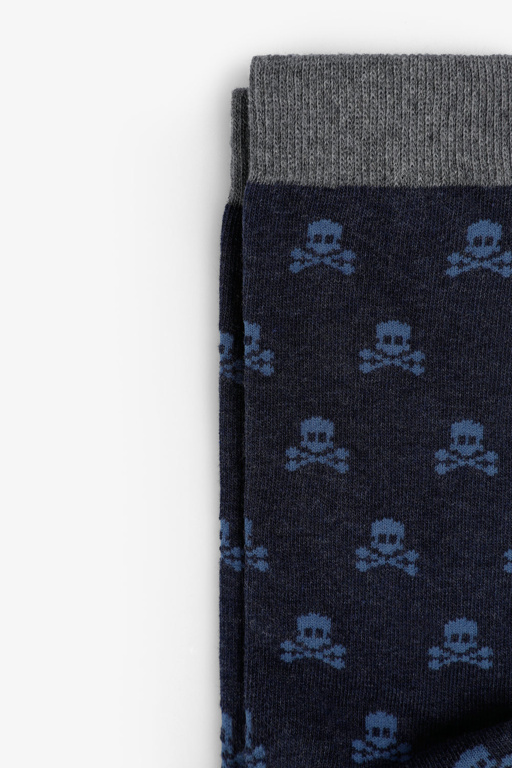 Calcetines confeccionados en mezcla de algodón. Estampado de calaveras. Puntera y talón a contraste. Detalle de logo a contraste.