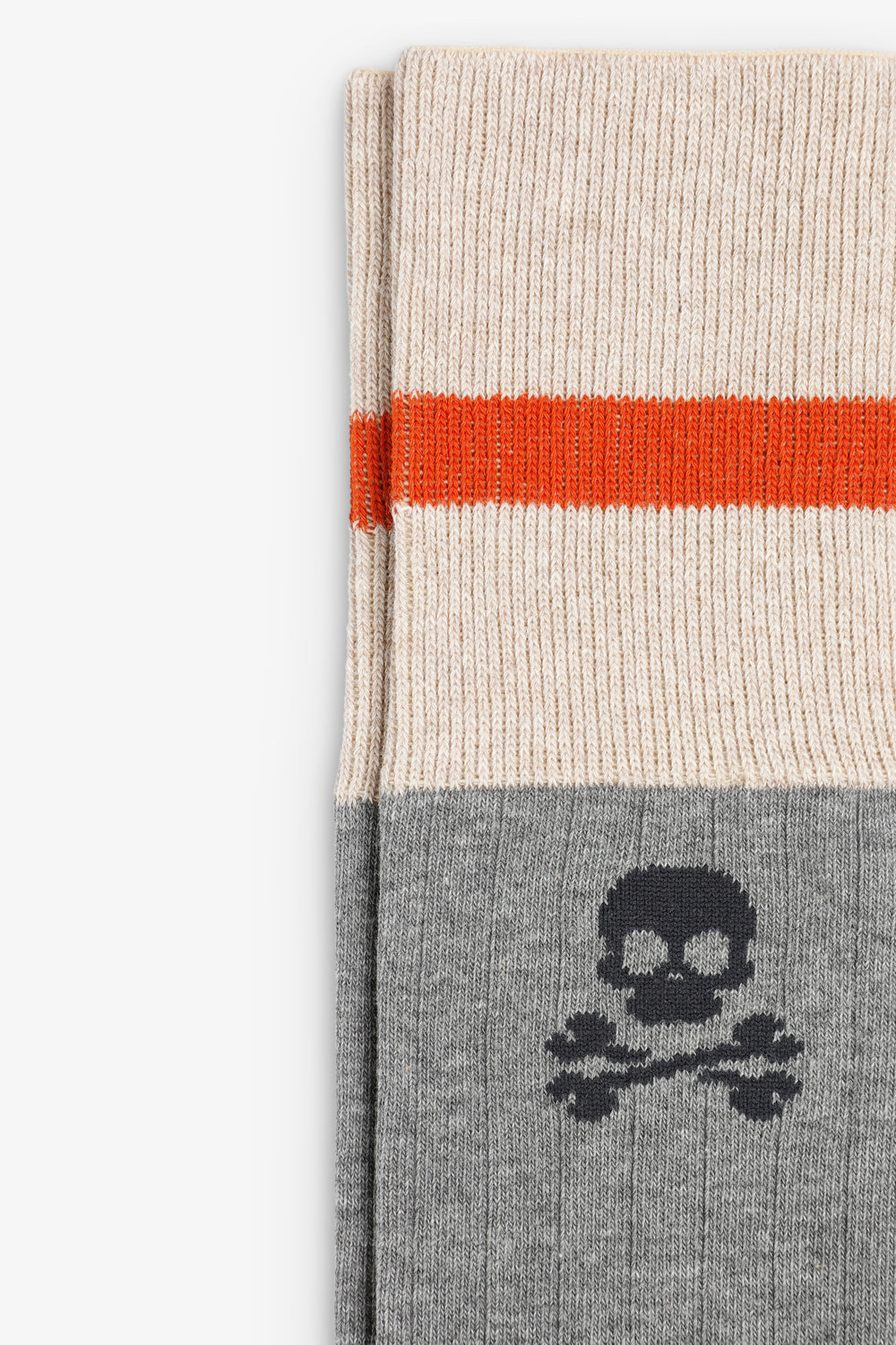 Calcetines confeccionados en algodón BCI. Detalle calavera y logo a contraste.