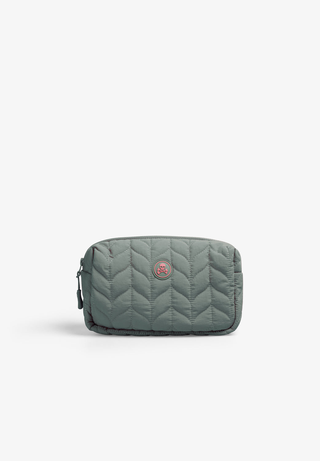 Neceser sintético. Detalle de parche frontal engomado con calavera. Cierre con cremallera.