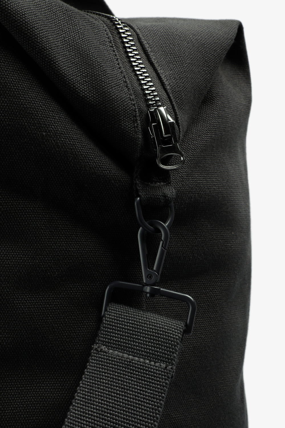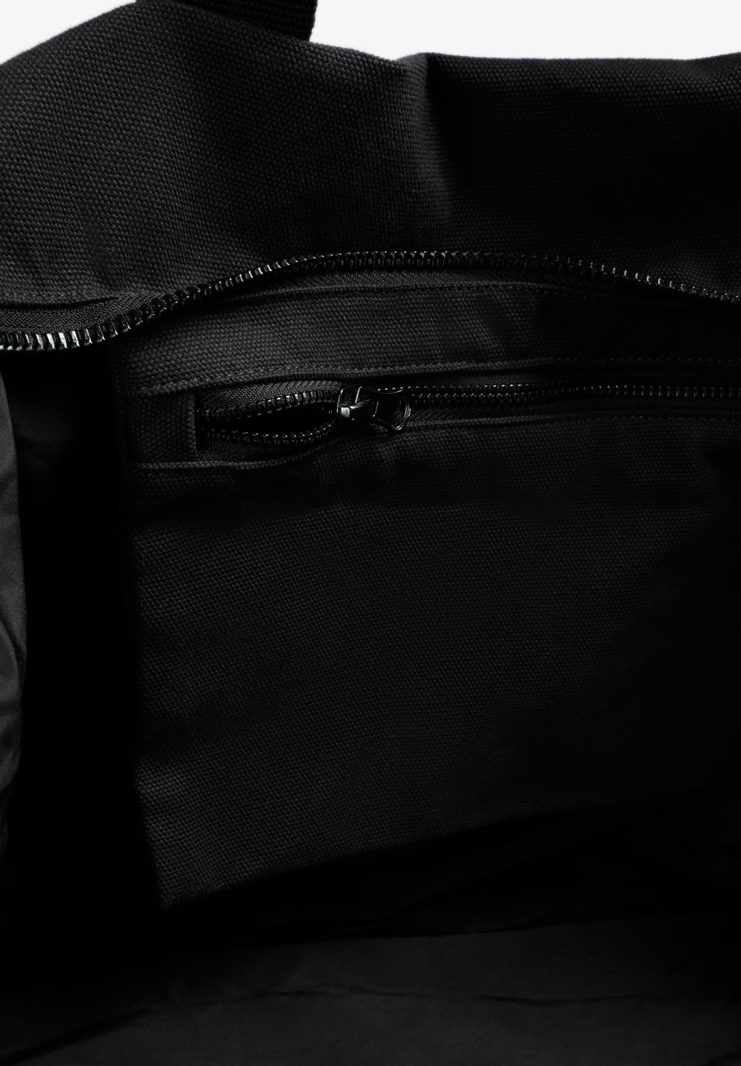 Bolsa confeccionada en 100% algodón. Doble asa corta. Asa larga desmontable. Print frontal con calavera y logo a contraste. Cierre mediante cremallera.