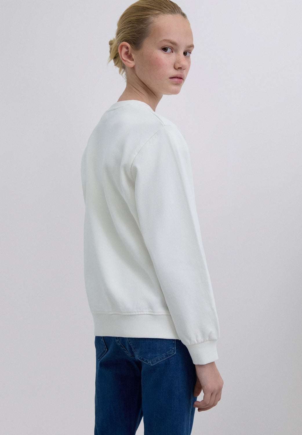 Sudadera confeccionada en 100% algodón BCI. Manga larga. Cuello redondo. Estampado bordado con motivo florar en frontal.