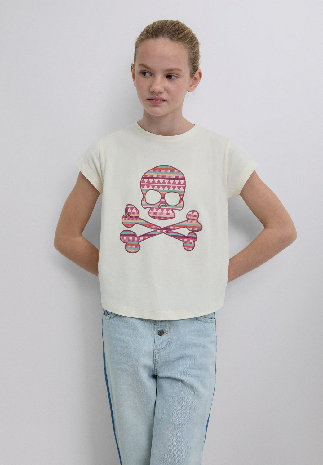 Camiseta confeccionada en 100% algodón BCI. Regular Fit. Print frontal con calavera. Cuello redondo. Manga corta.