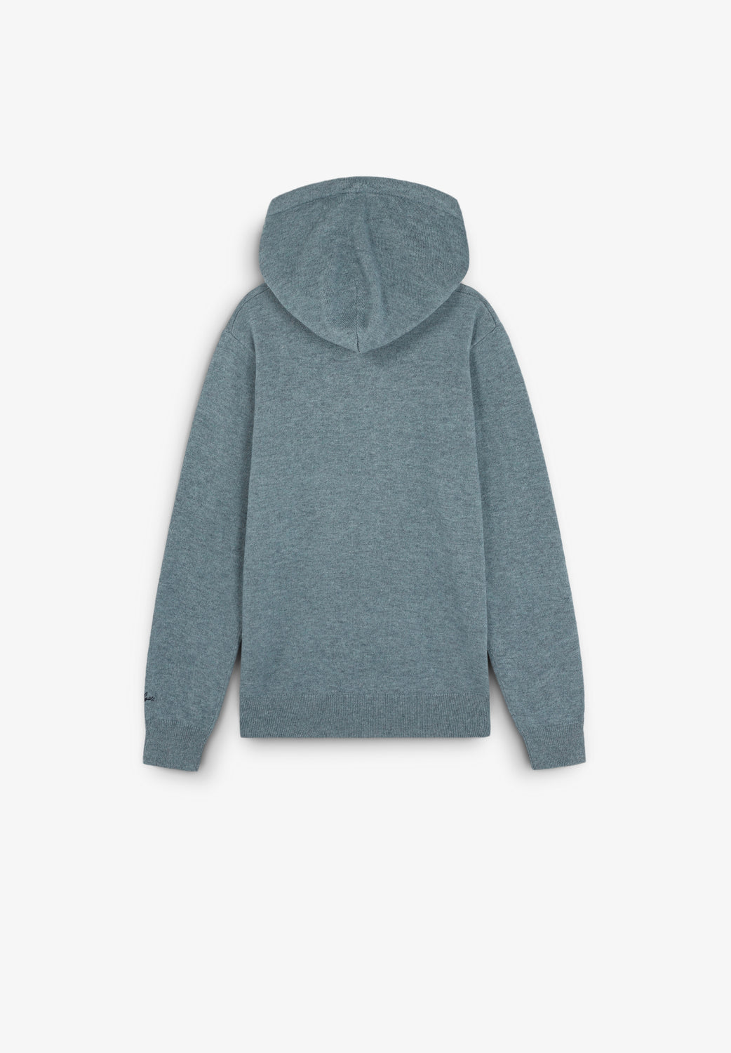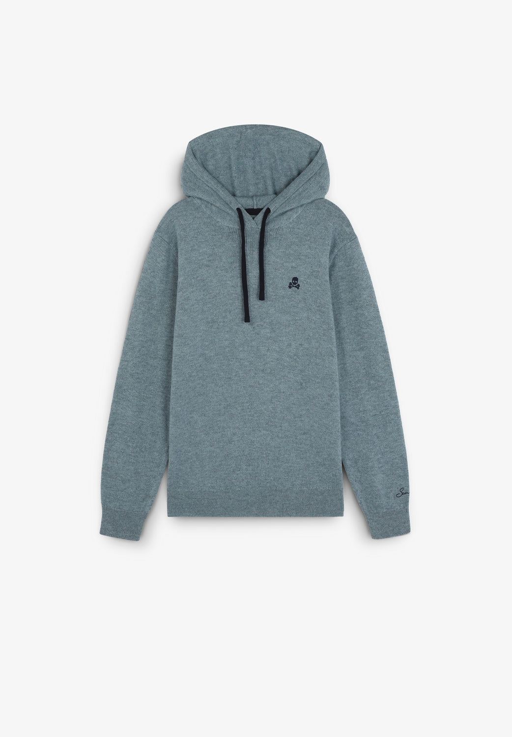 Jersey con capucha y detalles a contraste. Confeccionado en mezcla de lana y viscosa. Corte regular Fit. Cuello con capucha ajustable. Manga larga terminada con puños a contraste. Detalle calavera bordada a contraste.