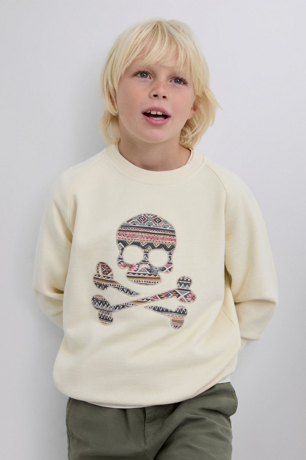 Sudadera confeccionada en 100% algodón BCI. Regular fit. Cuello redondo. Manga larga. Print frontal con calavera. Acabados en rib.