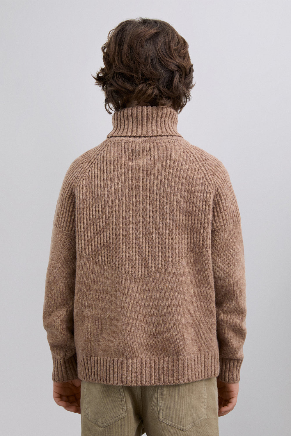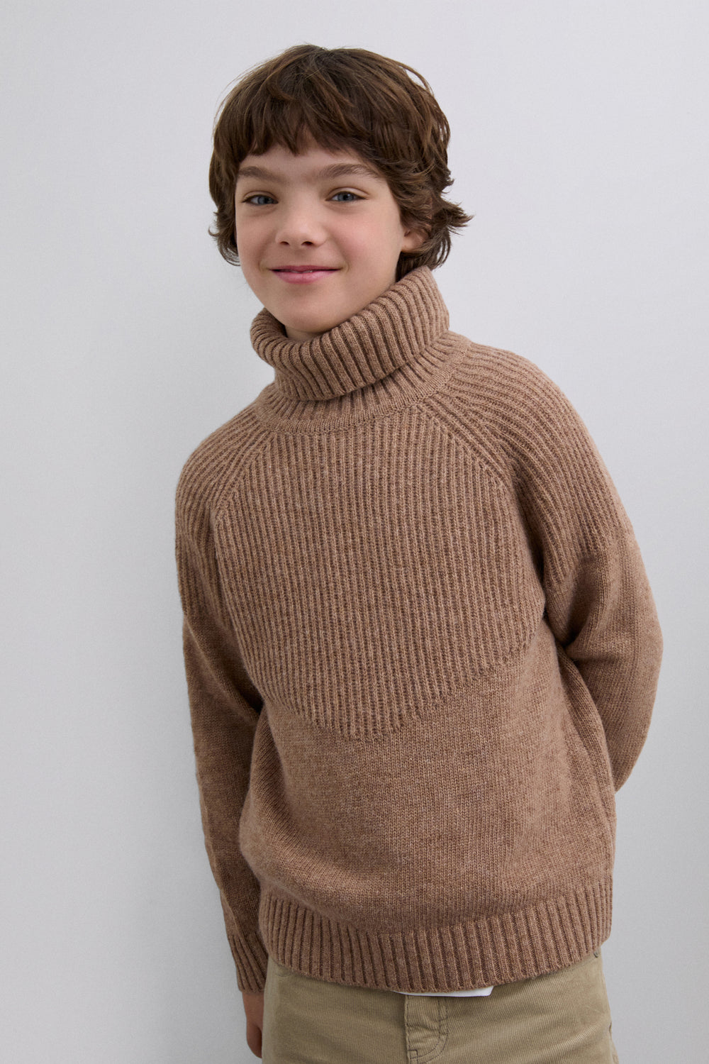 Jersey confeccionado en mezcla de lana. Regular fit, cuello alto y manga larga ranglan.