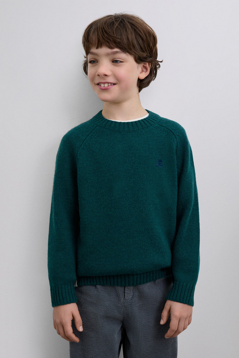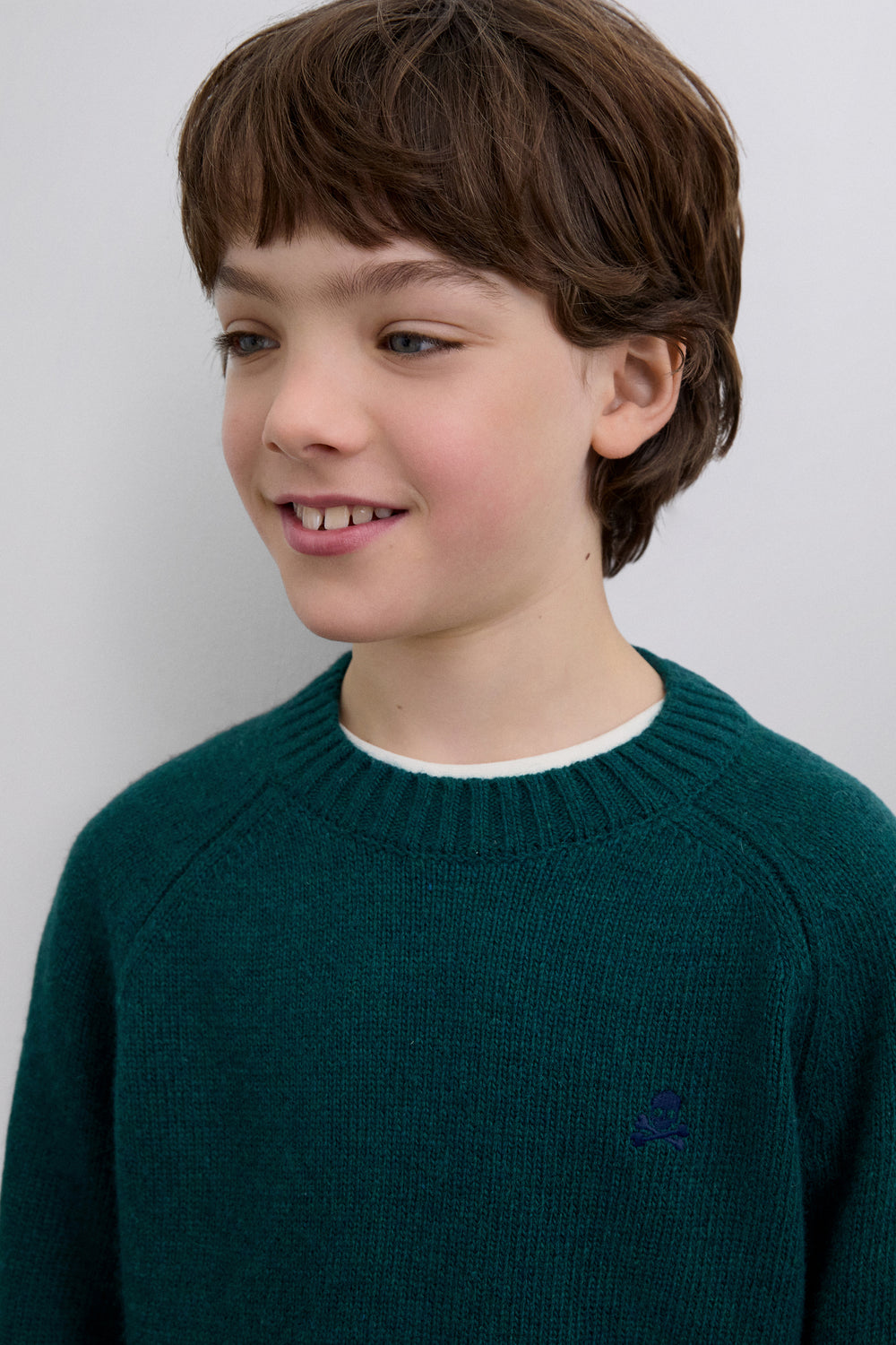 Jersey confeccionado en mezcla de lana. Regular fit, cuello redondo y manga larga ranglan. Calavera bordada a contraste.