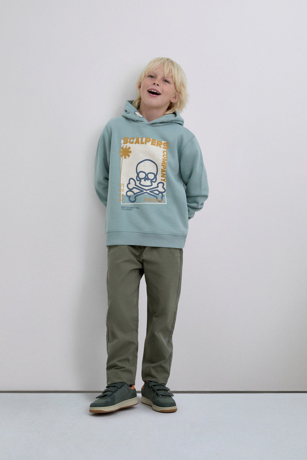 Sudadera con capucha ajustable. Regular fit. Manga larga. Print frontal con calavera y logo. Acabados en rib.