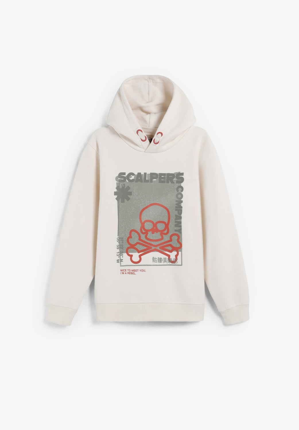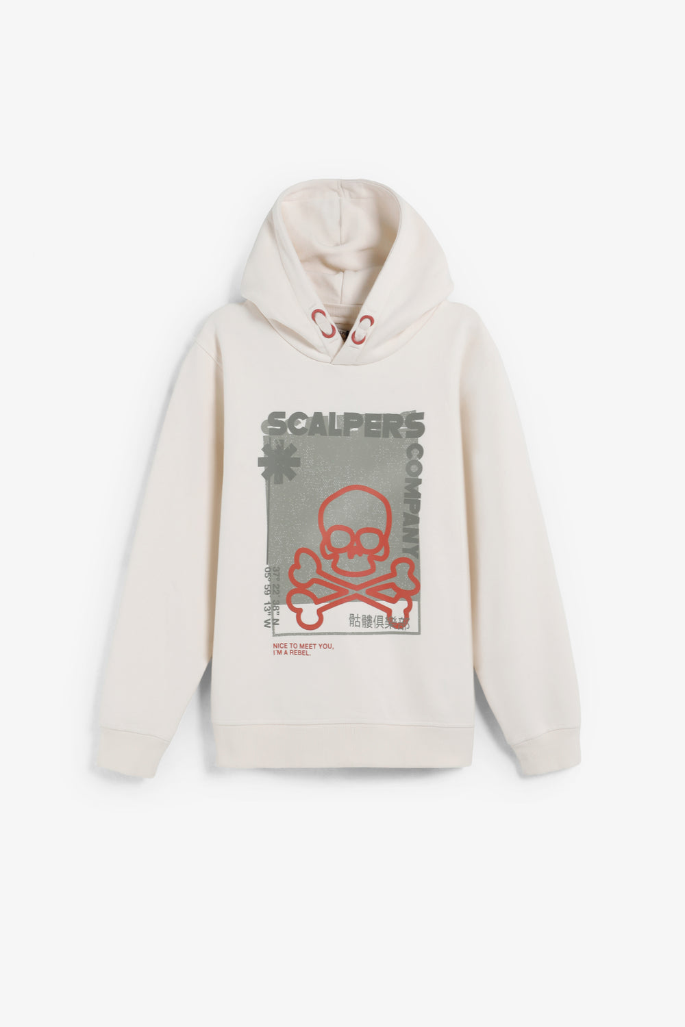 Sudadera con capucha ajustable. Regular fit. Manga larga. Print frontal con calavera y logo. Acabados en rib.