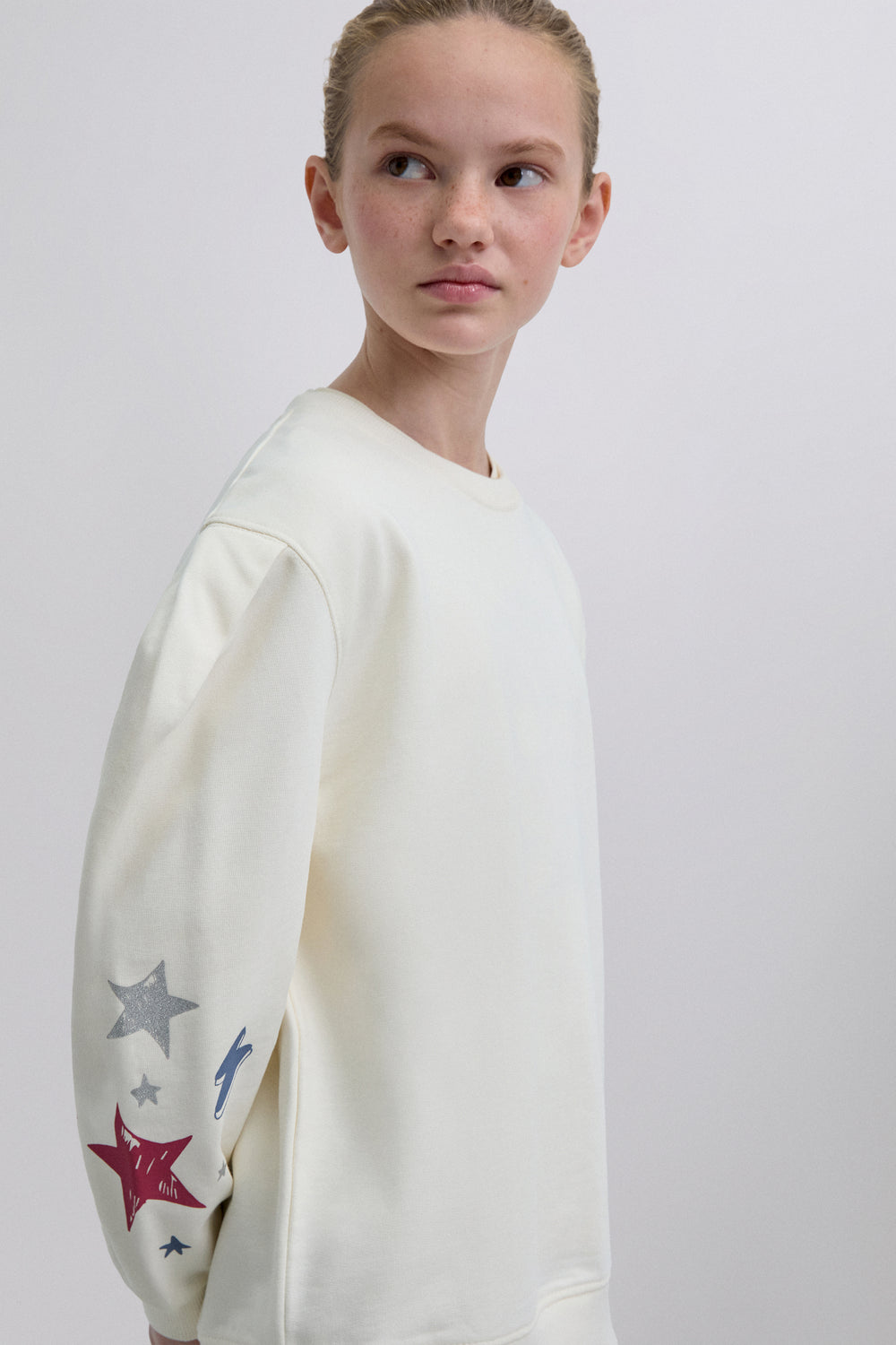 SUDADERA MANGA ABULLONADA ESTAMPADA